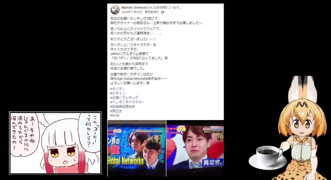『けものフレンズ3』の事前登録キャンペーンに景品表示法違反疑惑が浮上<br><a href="http://kemono-friendsch.com/archives/86521" target="_blank" rel="noopener nofollow">http://kemono-friendsch.com/archives/86521</a><br><br><span style="color: #333333;">190</span> <span style="color: #008800;"><strong>ジャパリパーク来園者</strong></span> <span style="font-size: 14px;">2019/07/13(土) 18:27:36</span> ID:MyYTg1MW<br><span style="color: #0000ff;">※176</span><br>批判的な意見じゃなくて誹謗中傷な、けもフレが好きなんだったらコーヒー飲む?とか人を煽らないようにして欲しいって言いたいんだ。<br><br><br><span style="color: #1d2129; font-size: 14px;">先日のお願いランキング1部にて<br>弊社デザイナーの岩田さん、上原が競合対決で出演しましたー</span><br><a href="https://www.facebook.com/manaki.shimura/posts/1211151418965238" target="_blank" rel="noopener nofollow">https://www.facebook.com/manaki.shimura/posts/1211151418965238</a><br><br><br>ほかBD3巻の雑な仕事もコーヒー兄貴の不手際という説が…<br><br><br>ワイトキングにっき<br><br>突然失礼します。 <br>どこが「けもフレが好き」なのが関係あるんでしょうか?<br>ワイキンはコーヒー岩田兄貴をお笑われ芸人として大好きなだけですが、<br>これを見て傷ついたり、対立を煽っていると捉える人もいるかと思います。<br>私は流石に傷つきました。<br>生存していただければ幸いです。