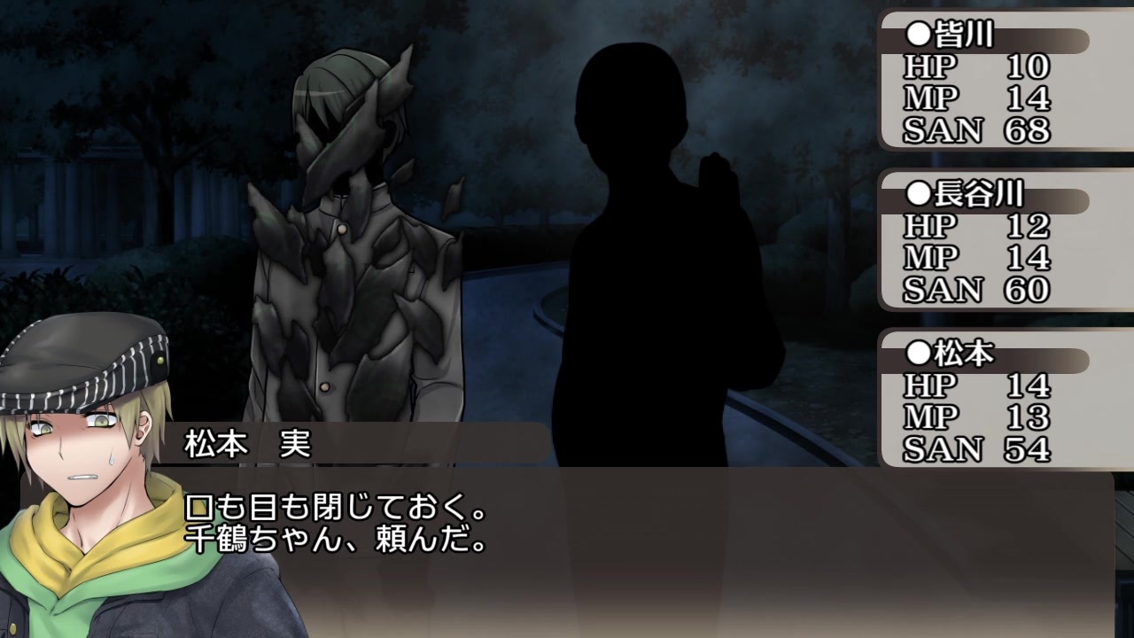 本作は、「 株式会社アークライト 」及び「株式会社KADOKAWA」が権利を有する『クトゥルフ神話TRPG』の二次創作物です。<br><br>Call of Cthulhu is copyright ©1981, 2015, 2019 by Chaosium Inc. ;all rights reserved. Arranged by Arclight Inc.<br>Call of Cthulhu is a registered trademark of Chaosium Inc.<br>PUBLISHED BY KADOKAWA CORPORATION 「クトゥルフ神話TRPG」<br><br>※当シナリオはシナリオ集「月下神話絵巻 弐巻」に収録されています。<br><a href="https://colorcat.booth.pm/" target="_blank" rel="noopener nofollow">https://colorcat.booth.pm/</a><br><br>長谷川探偵事務所録(<a href="https://www.nicovideo.jp/watch/sm35032594" class="watch">sm35032594</a>)の続編です。<br>今回はごくシンプルな短いお話です。<br>動画の作りを細々と変えたので、もし変なところがあったらごめんなさい。<br>諸々調整中です。<br><br>身内卓を動画化しています。<br>ハウスルールましましで色々緩いですが、ご容赦ください。<br>注意事項が様々ありますので、必ず冒頭の注意書きを良くお読みください。<br><br>また、継続探索者が登場します。<br>先に過去作品を見ていただいた方が、楽しんでいただけると思います。<br>過去作のネタバレも含みますので、何卒ご了承ください。<br>(関連作品:黒薔薇館の怪、共食、土に溺れる、赤の遺言、鬼猫犯科帳、白の囚人、青に染まる夜、探検は危険がいっぱい、軋む籠、ネオンのくすむ街 、月下学園怪奇譚、閉じられた夢、魔が潜む夜、陽の微笑み、影の嘆き、黒の共演、黄金色の旅路、山腹に眠る、遠い日の慟哭、長谷川探偵事務所録) <br><br>広告して下さる皆さん、いつもありがとうございます。<br>まとめてのお礼となりまして恐縮ですが、今後とも頑張ります。<br><br>[クトゥルフ動画一覧]<a href="https://www.nicovideo.jp/mylist/60110794" target="_blank" rel="noopener">mylist/60110794</a><br>[part1動画一覧]<a href="https://www.nicovideo.jp/mylist/60289921" target="_blank" rel="noopener">mylist/60289921</a><br>[今作マイリスト]<a href="https://www.nicovideo.jp/mylist/65376904" target="_blank" rel="noopener">mylist/65376904</a><br><br>[前]<a href="https://www.nicovideo.jp/watch/sm35409712" class="watch">sm35409712</a><br>[次回作]<a href="https://www.nicovideo.jp/watch/sm35442646" class="watch">sm35442646</a>(1920アーカム)<br /><br>色猫卓ポータルサイト<br>→<a href="https://marchocias.xsrv.jp/colorcat/index.html" target="_blank" rel="noopener nofollow">https://marchocias.xsrv.jp/colorcat/index.html</a><br>動画で紹介しても良い支援絵は #いろねこあーと で!<br><br>ピッコマで小説連載開始しました!<br>魔族生まれの聖女様!? 著:黒猫ている<br><a href="https://piccoma.com/web/product/156938" target="_blank" rel="noopener nofollow">https://piccoma.com/web/product/156938</a>