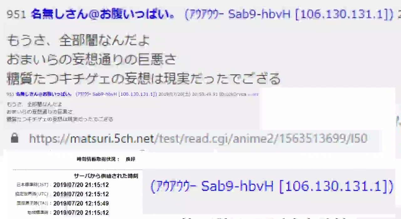 951名無しさん@お腹いっぱい。 (アウアウウー Sab9-hbvH [106.130.131.1])2019/07/20(土) 20:59:49.91ID:u0kDrviza>>953<br><strong>もうさ、全部闇なんだよ <br>おまいらの妄想通りの巨悪さ </strong><br>糖質たつキチゲェの妄想は現実だったでござる<br><br>けものフレンズ【2】500人目<br><a href="https://matsuri.5ch.net/test/read.cgi/anime2/1563513699/l50" target="_blank" rel="noopener nofollow">https://matsuri.5ch.net/test/read.cgi/anime2/1563513699/l50</a><br><br>画像の魚拓(お問い合わせに使えるかも)<br><a href="https://web.archive.org/web/20190720122317/https://may.2chan.net/b/src/1563625061969.png" target="_blank" rel="noopener nofollow">https://web.archive.org/web/20190720122317/https://may.2chan.net/b/src/1563625061969.png</a><br><br><br>魚拓<br><a href="https://web.archive.org/web/20190720121634/https://matsuri.5ch.net/test/read.cgi/anime2/1563513699/l50" target="_blank" rel="noopener nofollow">https://web.archive.org/web/20190720121634/https://matsuri.5ch.net/test/read.cgi/anime2/1563513699/l50</a><br><br>反応<br>暫定細谷が壺で反社の関与自白してら<br><br>キチゲェ…いつものじゃん<br><br><span style="font-size: 18px;"><strong>まあ今更になって命の危険感じて暴露に走るくらいならとっとと警察に保護されてほしい<br>一連の事件の事実を公表と責任を果たしてほしいけど関係者に死んでもらいたいわけじゃないので<br><br>これお問い合わせに使えるよね</strong></span><br>何か意味深だしこのIPはかなり連絡行ってるはずだし<br><br>通報しておけば荒らしが一人減りそうだしやっといて損はないかな<br><br>表に出てきてくれた方が安全なのは確かだしね<br>別件だけど亮も今何かあったらもう世間は確信に至るだろうし<br><br>細谷がふぁねるの場合→逮捕<br>細谷がふぁねるでない場合→最重要容疑者<br>どうあがいても罪<br><br>それを警察公安に言えよと 何で壺で言ってんだバカ<br>