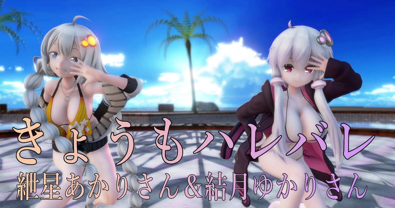 YouTube 4K 4096×2160 60fps<br><a href="https://www.youtube.com/watch?v=0F0e5i7f8FA" target="_blank" rel="noopener nofollow">https://www.youtube.com/watch?v=0F0e5i7f8FA</a><br>Music<br>【GUMI's】きょうもハレバレ【オリジナル】<br>ふわりP さん 2013/07/12<br><a href="https://www.nicovideo.jp/watch/sm21336351" target="_blank" rel="noopener nofollow">https://www.nicovideo.jp/watch/sm21336351</a><br><br>Motion&Camera<br>トレース元:SHARE LOCK HOMES さん<br><a href="https://www.nicovideo.jp/watch/sm21579959" target="_blank" rel="noopener nofollow">https://www.nicovideo.jp/watch/sm21579959</a><br>モーション:粉ふきスティック さん<br><a href="https://www.nicovideo.jp/watch/sm25166634" target="_blank" rel="noopener nofollow">https://www.nicovideo.jp/watch/sm25166634</a><br>カメラ:ぽっぽ さん<br><a href="http://www.nicovideo.jp/watch/sm25424215" target="_blank" rel="noopener nofollow">http://www.nicovideo.jp/watch/sm25424215</a><br><br>Stage<br>STONE式_海沿いのプール_Ver1.00 :ame2 さん<br><a href="https://www.nicovideo.jp/watch/sm34352967" target="_blank" rel="noopener nofollow">https://www.nicovideo.jp/watch/sm34352967</a><br>綺麗な空気の空 TP8 スカイドーム:怪獣対若大将P さん<br><a href="http://seiga.nicovideo.jp/seiga/im6455490" target="_blank" rel="noopener nofollow">http://seiga.nicovideo.jp/seiga/im6455490</a><br><br>Model<br>つみ式紲星あかり(水着):つみだんごさん<br><a href="https://3d.nicovideo.jp/works/td59541" target="_blank" rel="noopener nofollow">https://3d.nicovideo.jp/works/td59541</a><br>YuzukiYukari(mizugi)_v203:木造203さん<br><a href="http://seiga.nicovideo.jp/seiga/im9231799" target="_blank" rel="noopener nofollow">http://seiga.nicovideo.jp/seiga/im9231799</a><br><br>Effect<br>Ray-mmd 1.5.2 Ruiさん<br>ノーマルマップ ぐるみぃ さん<br>改変ディフュージョンフィルタ v0.5 おたもんさん<br>PowerDOF.fx v0.0.5 針金Pさん<br>AutoLuminous Ver.4.2 そぼろさん<br>空気遠近エフェクト 化身バレッタさん<br>ikClut_st026 ikenoさん<br>WaterLight ver5.0 ビームマンP<br><br>以上です。<br><br>制作、配布なさってくれた方々に感謝しています。