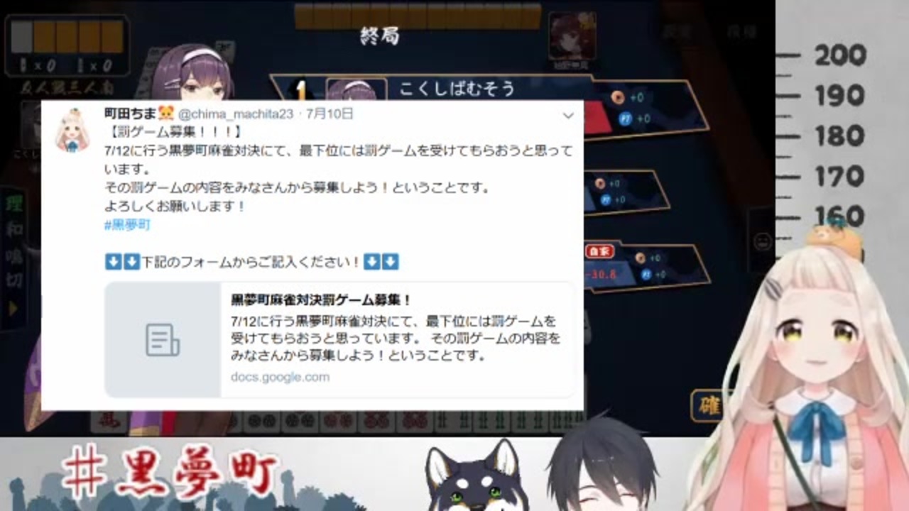 切って貼っただけ<br>最近配信がなくて寂しい同志のために作りました<br>忙しいあなたは<span style="color: #006699; font-size: 14px;"><a href="#" class="seekTime" data-seekTime="5:25" onclick="seekNicoPlayer('#5:25'); return false;">#5:25</a></span>からどうぞ<br><br>元動画:【雀魂】黒夢町?麻雀対決!!!【町田ちま視点】<br><br><a href="https://www.youtube.com/watch?v=Pby1_e9Juuw" target="_blank" rel="noopener nofollow">https://www.youtube.com/watch?v=Pby1_e9Juuw</a><br />町田ちまさんのチャンネル<br><br><a href="https://www.youtube.com/channel/UCo7TRj3cS-f_1D9ZDmuTsjw" target="_blank" rel="noopener nofollow">https://www.youtube.com/channel/UCo7TRj3cS-f_1D9ZDmuTsjw</a><br><br>ツイッター<br><br><a href="https://twitter.com/chima_machita23?lang=ja" target="_blank" rel="noopener nofollow">https://twitter.com/chima_machita23?lang=ja</a><br><br><span style="font-size: 10px;">制作したマイリスト<a href="https://www.nicovideo.jp/mylist/66115375" target="_blank" rel="noopener">mylist/66115375</a></span>