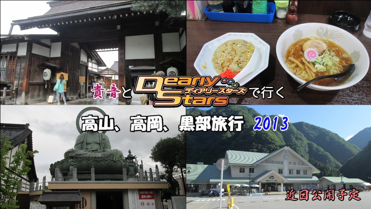 毎度お世話になっております、白牛乳Pです。<br>初見の方ははじめまして。既知の方はご無沙汰しております。<br>さて、本シリーズは2013年9月に黒部峡谷鉄道の再取材を行ったときに撮った高山と高岡を廻った素材を元に動画を作成しました。<br>(と言っても、今回は予告編ですが)<br>久しぶりの動画作成なので、色々と酷いかもしれません。<br>あと、<span style="font-size: 24px;"><strong>6年前</strong></span>のことなので色々現在と異なるところがあるかもしれません。<br>それから、今回初登場となるDSメンバーについて、ここではこういう設定だと思っていただければ幸いです。<br>(愛の名古屋弁然り、涼の身バレ然り)<br>今のところ、最後まで作成するつもりですのでお付き合いいただければ嬉しいです。<br><br>※このときの上り(欅平→宇奈月)の車窓動画をアップしていますので、よろしければご覧ください。<br><br>マイリスト→<a href="https://www.nicovideo.jp/mylist/66113471" target="_blank" rel="noopener">mylist/66113471</a><br>次回(1日目Part1)→<a href="https://www.nicovideo.jp/watch/sm35463329" class="watch">sm35463329</a><br>車窓動画上り(欅平→鐘釣)→<a href="https://www.nicovideo.jp/watch/sm35387100" class="watch">sm35387100</a>