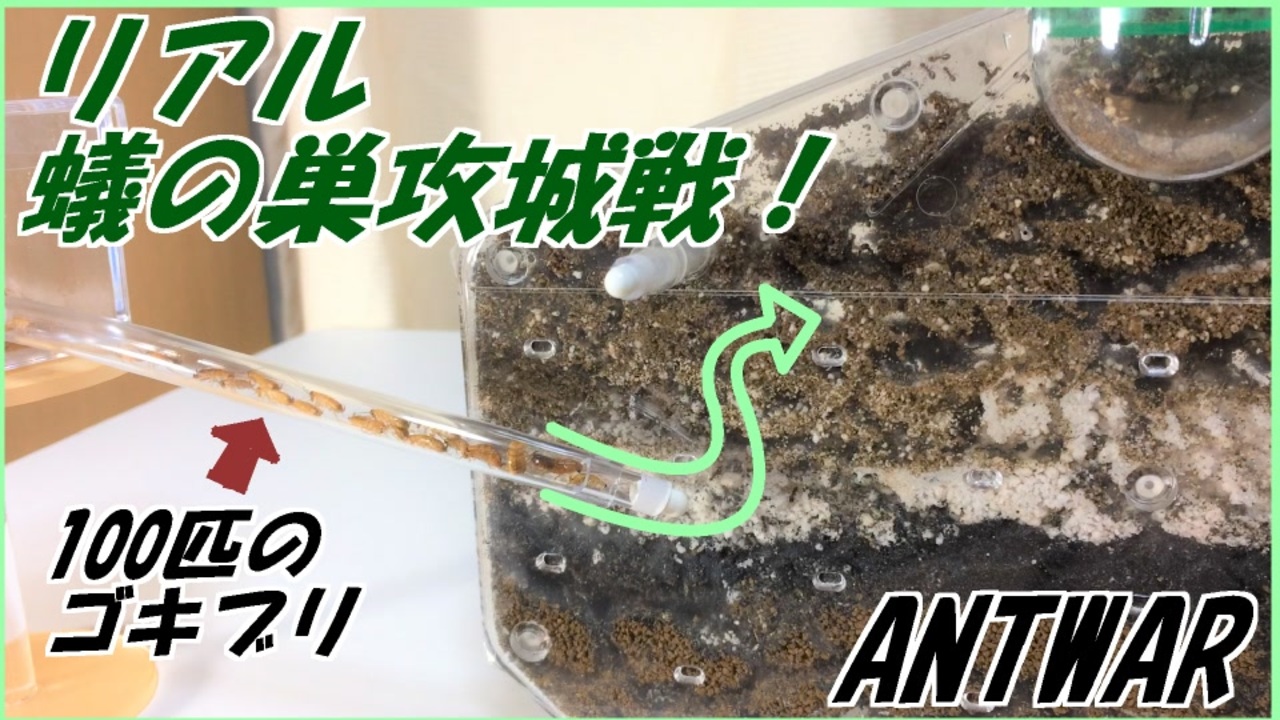 <a href="https://www.nicovideo.jp/watch/sm35439497" class="watch">sm35439497</a>←もどる 次へ→<a href="https://www.nicovideo.jp/watch/sm35456602" class="watch">sm35456602</a><br>火曜・木曜・土曜・日曜の週4回更新。<br><br>蟻戦争マイリスト→<u><a href="https://www.nicovideo.jp/mylist/56298874" target="_blank" rel="noopener">mylist/56298874</a></u><br><br>∧__∧<br>(・ω・)<リアルな蟻の巣。<br><br>蟻は高度な社会性を持つ昆虫である。<br>~The ANT is advanced social insect.~<br><br>卵を産む役、飼育する役、兵隊役などに分かれ、1つのコミュニティを形成する。<br>~ANTs constitute one comunity.ANTs have the part(childbirth,bring<br>up,military service) in the community.~<br><br>本来出会わないはずの2つの種族が遭遇した時、我々は彼らの未知なる知性を発見するかもしれない。~ We may discover their intelligences when two species encounter.~