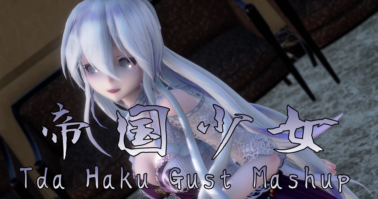 YouTube 4K 4096×2160 60fps<br><a href="https://www.youtube.com/watch?v=xNWek8jX5WQ" target="_blank" rel="noopener nofollow">https://www.youtube.com/watch?v=xNWek8jX5WQ</a><br>Music<br>帝国少女/初音ミク<br>R Sound Design さん 2017/03/09<br><a href="https://www.nicovideo.jp/watch/sm30788596" target="_blank" rel="noopener nofollow">https://www.nicovideo.jp/watch/sm30788596</a><br>使用曲:めありー さん<br><a href="https://www.nicovideo.jp/watch/sm31007416" target="_blank" rel="noopener nofollow">https://www.nicovideo.jp/watch/sm31007416</a><br><br>Motion&Camera<br>トレース元:親知ら’s さん<br><a href="https://www.nicovideo.jp/watch/sm31615154" target="_blank" rel="noopener nofollow">https://www.nicovideo.jp/watch/sm31615154</a><br>モーション:じゅんこだ(元じゅんこ) さん<br><a href="http://www.nicovideo.jp/watch/sm33682991" target="_blank" rel="noopener nofollow">http://www.nicovideo.jp/watch/sm33682991</a><br>カメラ:rad さん<br><a href="https://www.nicovideo.jp/watch/sm33693472" target="_blank" rel="noopener nofollow">https://www.nicovideo.jp/watch/sm33693472</a><br><br>Stage<br>meeting room stage:战物语さん<br><a href="https://www.bilibili.com/video/av59958753" target="_blank" rel="noopener nofollow">https://www.bilibili.com/video/av59958753</a><br>都市夜景H5 スカイドーム:怪獣対若大将P さん<br><a href="http://seiga.nicovideo.jp/seiga/im4525297" target="_blank" rel="noopener nofollow">http://seiga.nicovideo.jp/seiga/im4525297</a><br><br>Model<br>Tda Haku Gust Mashup:Sewelinaさん<br><a href="https://sewelina.deviantart.com/art/MMD-Haku-Gust-Mashup-Download-722749697" target="_blank" rel="noopener nofollow">https://sewelina.deviantart.com/art/MMD-Haku-Gust-Mashup-Download-722749697</a><br><br>Effect<br>Ray-mmd 1.5.2 Ruiさん<br>ノーマルマップ ぐるみぃ さん<br>改変ディフュージョンフィルタ v0.5 おたもんさん<br>PowerDOF.fx v0.0.5 針金Pさん<br>AutoLuminous Ver.4.2 そぼろさん<br>空気遠近エフェクト 化身バレッタさん<br>ikClut_st026 ikenoさん<br><br>以上です。<br><br>制作、配布なさってくれた方々に感謝しています。