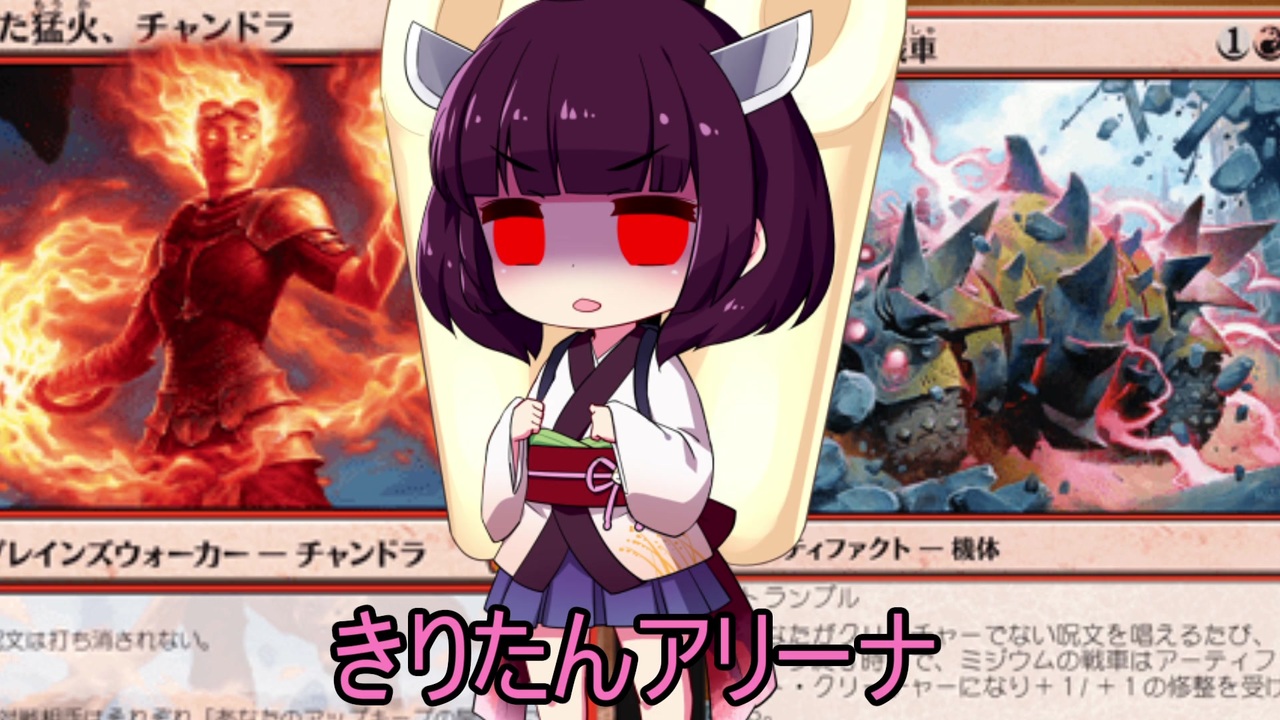 <span style="color: #ff0000; font-size: 24px;">夜更かし再び</span><br>前々回も同じことをして翌日結構辛かったのに同じことをしてしまった・・・まるで反省していない(´・ω・`) <br><br>【アリーナ公式。皆アリーナ、しよう!】<br><a href="https://magic.wizards.com/en/mtgarena" target="_blank" rel="noopener nofollow">https://magic.wizards.com/en/mtgarena</a><br><br>【前回の広告者様動画】<br>いっしー様:「琴葉葵のMTGA対戦記」<a href="https://www.nicovideo.jp/watch/sm35404475" class="watch">sm35404475</a><br>LMN様:「結月ゆかりの無個性MO道中記」<a href="https://www.nicovideo.jp/watch/sm32973034" class="watch">sm32973034</a><br>AHE様:「MTG一人対戦」<a href="https://www.nicovideo.jp/mylist/54219502" target="_blank" rel="noopener">mylist/54219502</a><br>ぐら様:「瞬速のずんだ!」<a href="https://www.nicovideo.jp/mylist/55736658" target="_blank" rel="noopener">mylist/55736658</a><br>ODIO様:「作って遊ぶアリーナ」<a href="https://www.nicovideo.jp/watch/sm35368027" class="watch">sm35368027</a><br>野良カピバラ様「マキちゃんとイタコねーさまのデッキ探訪」<a href="https://www.nicovideo.jp/mylist/65556708" target="_blank" rel="noopener">mylist/65556708</a><br>ラーメン王様:「結月ゆかりのミラクル解説ラジオ」<a href="https://www.nicovideo.jp/mylist/62359037" target="_blank" rel="noopener">mylist/62359037</a><br>ててとら様:「吾輩はMTG動画である。名前はまだ無い。」<a href="https://www.nicovideo.jp/watch/sm33919249" class="watch">sm33919249</a><br>zzz様:「白金決闘者あかり」<a href="https://www.nicovideo.jp/mylist/64686468" target="_blank" rel="noopener">mylist/64686468</a><br>血染めのダイチ様:「ODDS & ENDS」<a href="https://www.nicovideo.jp/watch/sm35428181" class="watch">sm35428181</a><br><br>【前置きカットリンク】<br>使用デッキ説明まで:<a href="#" class="seekTime" data-seekTime="0:49" onclick="seekNicoPlayer('#0:49'); return false;">#0:49</a><br>試合画面まで:<a href="#" class="seekTime" data-seekTime="3:07" onclick="seekNicoPlayer('#3:07'); return false;">#3:07</a><br><br>【連絡用アドレス】 <br><span style="color: #262626;">kiritanex_2@yahoo.co.jp </span><br>【YouTube】<br><span style="color: #006699; font-size: 13px;"><a href="https://www.youtube.com/channel/UCGf_tUZ2hv7KGcroveuN64w/featured?view_as=subscriber" target="_blank" rel="noopener nofollow">https://www.youtube.com/channel/UCGf_tUZ2hv7KGcroveuN64w/featured?view_as=subscriber</a></span><br><br><a href="https://www.nicovideo.jp/mylist/63851869" target="_blank" rel="noopener">mylist/63851869</a> 前:<a href="https://www.nicovideo.jp/watch/sm35429940" class="watch">sm35429940</a> 次:<a href="https://www.nicovideo.jp/watch/sm35480591" class="watch">sm35480591</a><br><br>【L O L動画も投稿してます:<a href="https://www.nicovideo.jp/mylist/58624144" target="_blank" rel="noopener">mylist/58624144</a>】<br>