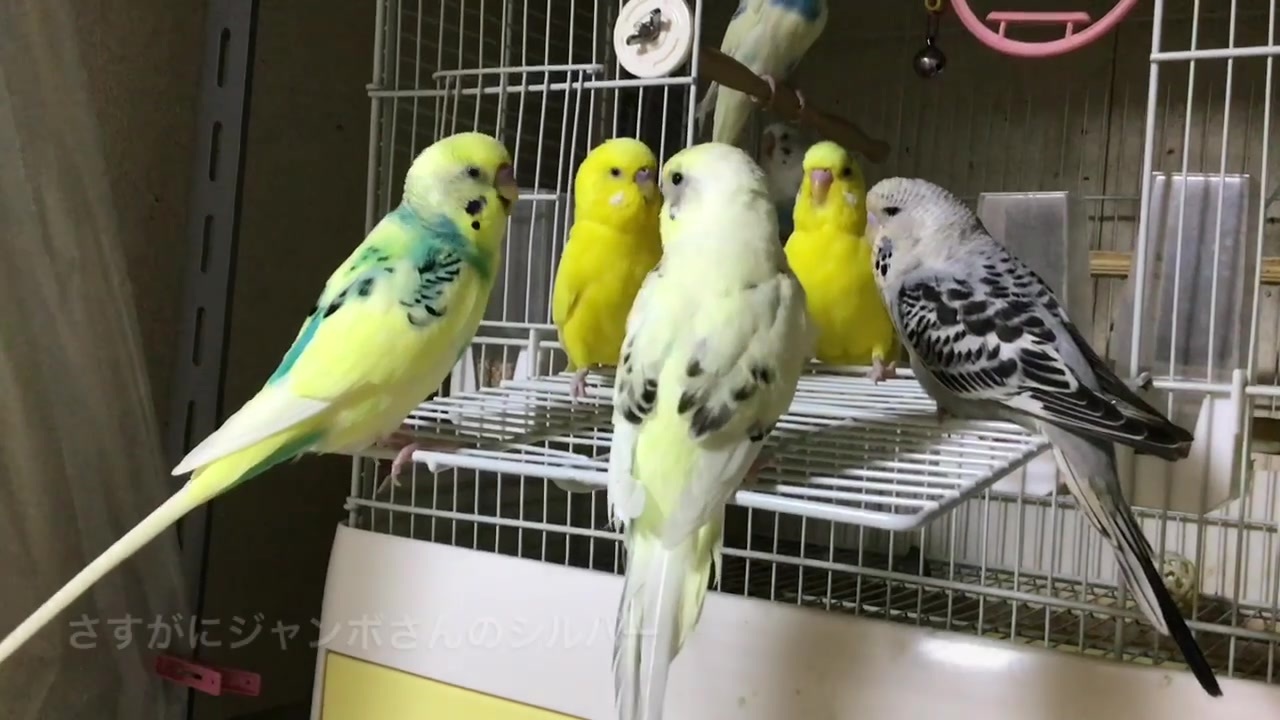 ちょっと、順番が変わっちゃうので、タイマー外してupします。↓<br><br>シルバーのメガバクテリアの治療も終わり、本当は週齢の近いサルファーと同室にして仲間慣れをして欲しいのですが、サルファーの健康診断がまだなので、ちょっとお試し的に大人セキセイとキガシラのこまちと会わせてみました。<br>でも、以外な展開になってしまいました(;´д`)<br>うーん、シルバーをおとなしい先輩ジャンボさんと同室にしても良いのだろうか?<br><br>※ サルファー達の健康診断の結果は、今日か明日中にでもup予定!<br>※ ジャンボをお迎えしたい方へ…ジャンボさんも出回るようになったようですが、人気が出てきたせいか、すぐに売れて入荷もなかなかしないようです。<br>それと同時にセキセイハーフの子も多く、ジャンボらしいデコっぱちの目付きの悪い子とは、なかなか巡り会えないかもしれません。<br>ブリーダーとのツテのありそうなお店に通って、必ず見た方が良いですよ。<br>ヒナの時からデコとあんよの大きさがないと、ジャンボらしさのない子になるようです。 ただ、お迎えしたら皆んな可愛くなっちゃうんですがねw 良い子と巡り会えるとイイですねー(^-^)/<br>※ ノーマルジャンボさんをお迎えしたお店が違うお店だったのですが、ブリーダーさんは同じでした。ちゃんと管理されているブリーダーはインコさんに無理させていないんだと思います。だからこそ特徴が固定されているんだと思います。<br>ジャンボさんを見ていて思うこと…繁殖力(発情)が弱いです。 ♂♀同室にしていても、その気になりません。人気に便乗と考えるとハーフも…そういう所が出ておかしくないと思っています。かつてSNSで、うちの子を交換申し込みしてきた失礼なブリーダーもいたし(だからSNS辞めました)お金しか考えてない人はいると思います。<br><br>* 宝石の鳥 <a href="https://www.nicovideo.jp/mylist/62527544" target="_blank" rel="noopener">mylist/62527544</a> / コパル育雛動画 <a href="https://www.nicovideo.jp/mylist/62527500" target="_blank" rel="noopener">mylist/62527500</a><br> ピロロ \(・∀・)/ ピロロ <a href="https://www.nicovideo.jp/mylist/65969410" target="_blank" rel="noopener">mylist/65969410</a><br> キガシラアオハシインコ <a href="https://www.nicovideo.jp/mylist/62527555" target="_blank" rel="noopener">mylist/62527555</a>