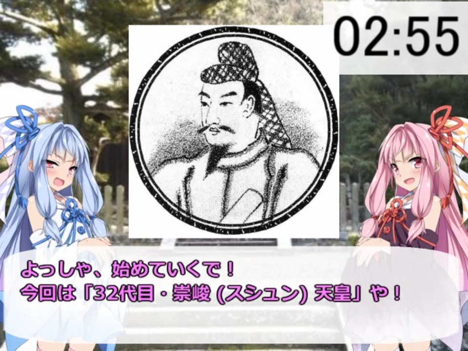 「神話&古墳時代編」は今回で終了です。<br>次回から「飛鳥時代」に突入します!〇(><)<br><br>●崇峻 (すしゅん) 天皇 基本プロフィール <br> 父 欽明天皇 (第十二皇子) 母 蘇我小姉君<strong> </strong>(蘇我稲目娘) <br> 在位 587年 ~ 592年 (6年間)<br> 生涯 ? 年 ~ 592年 (不明)<br><br>●1代目 神武天皇 → <a href="https://www.nicovideo.jp/watch/sm33459779" class="watch">sm33459779</a> <br> 31代目 用明天皇 → <a href="https://www.nicovideo.jp/watch/sm35450981" class="watch">sm35450981</a> 33代目 推古天皇 → <a href="https://www.nicovideo.jp/watch/sm35623916" class="watch">sm35623916</a><br>●3分天皇紹介リスト → <a href="https://www.nicovideo.jp/mylist/62530271" target="_blank" rel="noopener">mylist/62530271</a> ついったー @inocchi_0515<br> 質問箱 → <a href="https://peing.net/ja/inocchi_0515?event=7" target="_blank" rel="noopener nofollow">https://peing.net/ja/inocchi_0515?event=7</a>