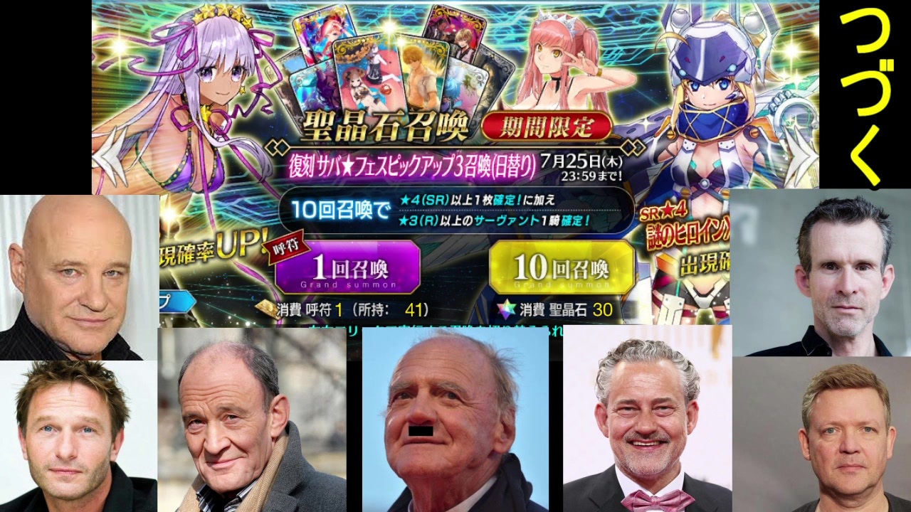<span style="font-size: 14px;"><strong>総統閣下は、BBの日焼けを治すべく頑張っていた</strong></span><span style="font-size: 14px;">…</span><br><br><br><br>閣下達は全ての同人誌作成を、無事に終え<br>最後のガチャという戦いに挑むのであった・・・<br><br><br><span style="font-size: 18px;">*ご注意*同人誌画像は無し サバ☆フェスのネタバレあり</span><br><br><br><br><br><span style="font-size: 14px;">前→</span><a href="https://www.nicovideo.jp/watch/sm35441797" class="watch">sm35441797</a><br><br><br><span style="font-size: 18px;">次→<a href="https://www.nicovideo.jp/watch/sm35522229" class="watch">sm35522229</a></span><br><br><br><span style="font-size: 14px;"><strong>使用素材<br>・</strong></span><span style="color: #6a6a6a; font-size: small;"><strong>AviUtl</strong></span><br><span style="font-size: 14px;">BGM<br>・FGO<br><br>追記8月11日</span><br><span style="font-size: 18px;">・</span><span style="color: #000000; font-size: 18px;">むつき様、ナマコ様、琥珀様、トムト様、marinn様、</span><span style="color: #000000; font-size: 13px;">広告ありがとうございます!!!</span><br><br><br><br><span style="font-size: 12px;">ツイッター → </span><span style="color: #006699; font-size: 14px;"><a href="https://twitter.com/FGOmukakinkakka" target="_blank" rel="noopener nofollow">https://twitter.com/FGOmukakinkakka</a></span>
