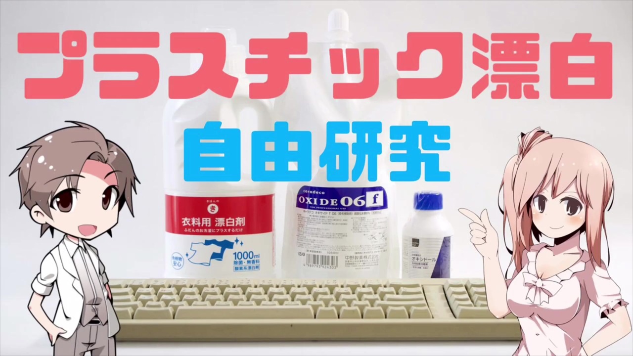 夏休みの自由研究にどうぞ!<br>結果:2剤+熱>>2剤+日光>オキシドール+日光≧ワイドハイター+日光<br><br>お借りしたもの<br><a href="https://commons.nicovideo.jp/material/nc102801" target="_blank" rel="noopener nofollow">https://commons.nicovideo.jp/material/nc102801</a><br><a href="http://seiga.nicovideo.jp/seiga/im6146560" target="_blank" rel="noopener nofollow">http://seiga.nicovideo.jp/seiga/im6146560</a><br><a href="http://seiga.nicovideo.jp/seiga/im5562600" target="_blank" rel="noopener nofollow">http://seiga.nicovideo.jp/seiga/im5562600</a><br><a href="http://seiga.nicovideo.jp/seiga/im5476229" target="_blank" rel="noopener nofollow">http://seiga.nicovideo.jp/seiga/im5476229</a><br><a href="http://www.hmix.net/" target="_blank" rel="noopener nofollow">http://www.hmix.net/</a><br><br>...もうお人形遊びなんてしないよ。
