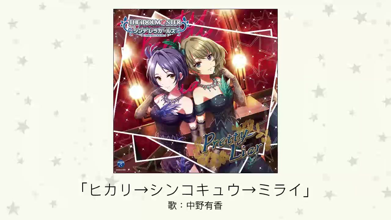 転載元:<a href="https://www.youtube.com/watch?v=fzuREykXFFI" target="_blank" rel="noopener nofollow">https://www.youtube.com/watch?v=fzuREykXFFI</a><br><br>2019年8月14日発売 THE IDOLM@STER CINDERELLA GIRLS STARLIGHT MASTER 31 Pretty Liar 歌:高垣楓、速水奏 COCC-17521 CD1枚組 価格:¥1,389+税<br><br>収録内容<br>Tr.01 Pretty Liar(M@STER VERSION) 作詞:森由里子 作曲・編曲:石濱翔(MONACA) 歌:高垣楓、速水奏 <br><br>Tr.02 ヒカリ→シンコキュウ→ミライ 作詞・作曲・編曲:やいり 歌:中野有香 <br><br>Tr.03 Stage Bye Stage 作詞:ミズノゲンキ 作曲・編曲:睦月周平 歌:島村卯月、小日向美穂、五十嵐響子、渋谷凛、北条加蓮、神谷奈緒、本田未央、日野茜、高森藍子 <br><br>Tr.04 Pretty Liar(M@STER VERSION) オリジナル・カラオケ <br><br>Tr.05 ヒカリ→シンコキュウ→ミライ オリジナル・カラオケ ボーナストラック <br><br>Tr.06 Pretty Liar(GAME VERSION) 歌:高垣楓、速水奏 <br><br>Starring by 高垣楓(CV:早見沙織)、速水奏(CV:飯田友子)、中野有香(CV:下地紫野)、島村卯月(CV:大橋彩香)、 小日向美穂(CV:津田美波)、五十嵐響子(CV:種﨑敦美)、渋谷凛(CV:福原綾香)、北条加蓮(CV:渕上舞)、 神谷奈緒(CV:松井恵理子)、本田未央(CV:原紗友里)、日野茜(CV:赤﨑千夏)、高森藍子(CV:金子有希)
