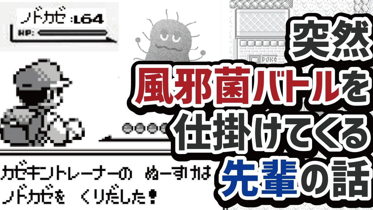 風邪の菌、略して「カゼキン」<br><br><span style="color: #000000; font-size: 14px;">めちゃくちゃ、しぶとい菌を送りつけてくる先輩:ぬーすけ先輩 </span><br><span style="color: #222222;">人に感染する寄生虫症を送りつけてくる</span><span style="color: #000000;">後輩</span><span style="color: #000000; font-size: 14px;">:なな湖</span><br><span style="font-size: 14px;">2人あわせて、琵琶湖ちゃぷちゃぷブラザーズです。<br><br>※動画協力:馬廻り衆<br><br>ツイッター→ </span><span style="color: #006699; font-size: 14px;"><a href="https://twitter.com/osya_775" target="_blank" rel="noopener nofollow">https://twitter.com/osya_775</a></span><br><span style="color: #000000; font-size: 14px;">コミュ→</span><span style="color: #006699; font-size: 14px;">co2018468</span><br><span style="color: #000000; font-size: 14px;">先輩の話マイリス→</span><span style="color: #006699; font-size: 14px;"><a href="https://www.nicovideo.jp/mylist/53996710" target="_blank" rel="noopener">mylist/53996710</a></span><br><span style="color: #000000; font-size: 14px;">前の話→</span><a href="https://www.nicovideo.jp/watch/sm35431734" class="watch">sm35431734</a><span style="color: #000000; font-size: 14px;"> 次の話→近日</span><br><br>妖怪ウォッチ4の実況、現在投稿中!→<a href="https://www.nicovideo.jp/watch/sm35325786" class="watch">sm35325786</a><br><span style="color: #000000; font-size: 14px;">ほかゲーム実況part1まとめ→</span><span style="color: #006699; font-size: 14px;"><a href="https://www.nicovideo.jp/mylist/9636877" target="_blank" rel="noopener">mylist/9636877</a></span><span style="color: #000000; font-size: 14px;">/</span>