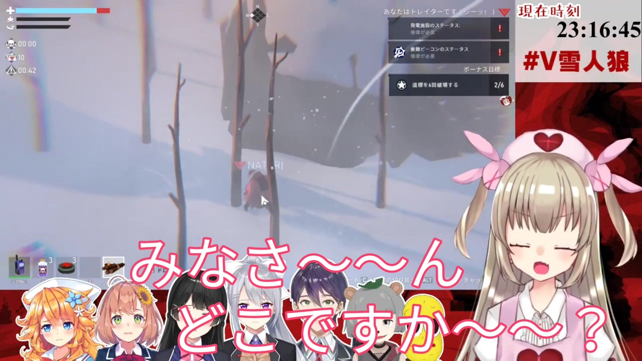 なんで人数分枠があるんですか(キレ)<br>個人的には名取、でろーん、ほんひま、力也の視点が面白いかなと思った<br>ところで名取みたいなナースと雪山で遭遇したらどうしますか?雪山効果なりますか?<br><br>元配信名取視点<br><a href="https://m.youtube.com/watch?v=X9Uu8ydcVVw" target="_blank" rel="noopener nofollow">https://m.youtube.com/watch?v=X9Uu8ydcVVw</a>