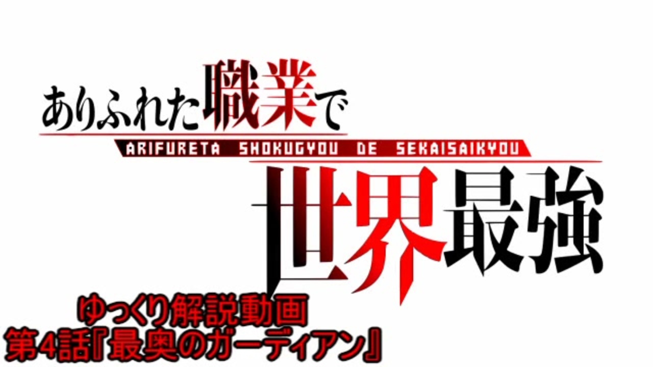 修行僧と苦行後輩くらいしか見ていないと噂されるアニメ『ありふれた職業で世界最強』<br><br>でも解説は続けていくよ<br><br><span style="color: #000000; font-size: 14px;">初見の人でも「ありふれた職業で世界最強」に少しでも興味を持ってもらえますように<br><br>前話(第3話)→</span><a href="https://www.nicovideo.jp/watch/sm35458722" class="watch">sm35458722</a><br><br><span style="color: #000000; font-size: 14px;">シリーズ一覧 </span><span style="color: #006699; font-size: 14px;"><a href="https://www.nicovideo.jp/series/44338" target="_blank" rel="noopener">series/44338</a></span><br><br><span style="color: #000000; font-size: 14px;">マイリスト </span><span style="color: #006699; font-size: 14px;"><a href="https://www.nicovideo.jp/mylist/66053429" target="_blank" rel="noopener">mylist/66053429</a></span><br><br><span style="color: #000000; font-size: 14px;">第5話→</span><a href="https://www.nicovideo.jp/watch/sm35521000" class="watch">sm35521000</a>