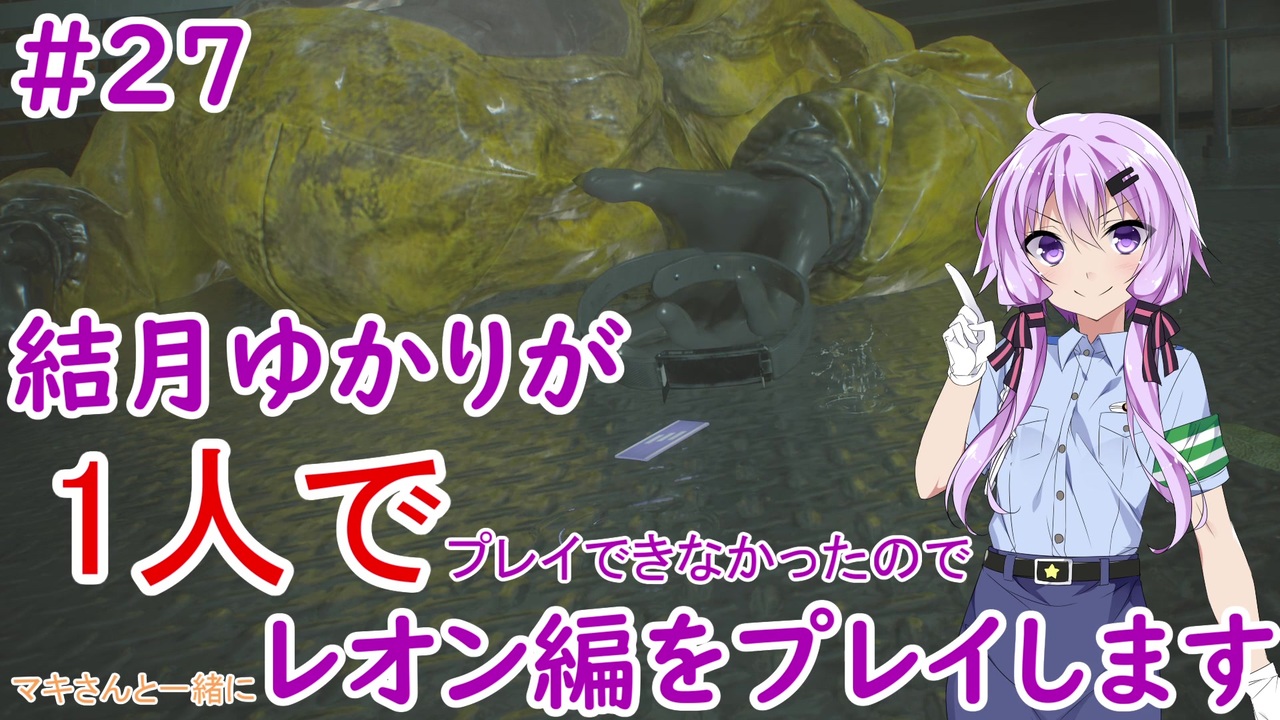 おはようございます。よこちーです。<br>今日もバイオRE:2を楽しくやっていきましょう。<br><br>今回は、散布液を適度な温度に冷却するために装置を探して動きます。<br>プラント43の場所で叩きつけられていた防護服の人の正体も、<br>PCのメールで明らかになったり、またあいつが追いかけてきたりします。<br><br>・難易度:Normal<br>・プレイ回数:初見(レオン編収録済み)<br>・探索:がばがば<br>・へたくそなプレイ(今回から特に色濃く出てしまってます)<br>・ボイロ音声<br>・百合<br><br>以上が含まれているため苦手な方はブラウザバックを、<br>OKという方はそのままご覧ください。<br><br><a href="https://www.nicovideo.jp/watch/sm35463844" class="watch">sm35463844</a>←前回 次回→<a href="https://www.nicovideo.jp/watch/sm35525905" class="watch">sm35525905</a><br><br>マイリスト→<a href="https://www.nicovideo.jp/mylist/64880840" target="_blank" rel="noopener">mylist/64880840</a><br><span style="color: #000000; font-size: 14px;">part1マイリスト→</span><span style="color: #006699; font-size: 14px;"><a href="https://www.nicovideo.jp/mylist/59931747" target="_blank" rel="noopener">mylist/59931747</a></span><br><br><span style="color: #000000; font-size: 14px;">素敵な立ち絵を描いている絵師様⇒Mtu様(</span><span style="color: #006699; font-size: 14px;"><a href="https://seiga.nicovideo.jp/seiga/im6322312" target="_blank" rel="noopener">im6322312</a></span><span style="color: #000000; font-size: 14px;">)</span><br><br><span style="color: #000000;">↓投稿された場合更新されます。検索で引っかからない場合はお手数ですがこちらからどうぞ。<br>【Twitter】⇒</span><span style="color: #006699; font-size: 14px;"><a href="https://twitter.com/yukamaki5656" target="_blank" rel="noopener nofollow">https://twitter.com/yukamaki5656</a></span><br><br><span style="color: #000000; font-size: 14px;">【コミュニティ】⇒</span><span style="color: #006699; font-size: 14px;">co3807280</span><span style="color: #000000; font-size: 14px;">(水曜夜25時30分くらいに何かしゃべってます。</span><br>