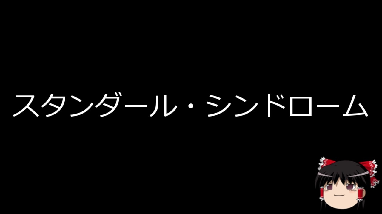 スタンダール・シンドローム<br><br>色んな病気をゆっくりさんに読んでもらいました。<br>基本的に短めに作っていきます。<br>Wikipediaコピペです<br><br>使用したBGM、SEはSenses Circuit→ttp://www.senses-circuit.com<br><br><a href="https://www.nicovideo.jp/watch/sm35488641" class="watch">sm35488641</a>←前 次→<a href="https://www.nicovideo.jp/watch/sm35514177" class="watch">sm35514177</a><br><br>不思議な病気マイリスト→<a href="https://www.nicovideo.jp/mylist/63539460" target="_blank" rel="noopener">mylist/63539460</a><br>日本事件簿マイリスト→<a href="https://www.nicovideo.jp/mylist/59772553" target="_blank" rel="noopener">mylist/59772553</a><br>SCPマイリスト→<a href="https://www.nicovideo.jp/mylist/59576028" target="_blank" rel="noopener">mylist/59576028</a><br>ゆっくり怪談マイリスト→<a href="https://www.nicovideo.jp/mylist/59576030" target="_blank" rel="noopener">mylist/59576030</a><br>PART1集→<a href="https://www.nicovideo.jp/mylist/59576031" target="_blank" rel="noopener">mylist/59576031</a><br>コミュ→co3663069<br>