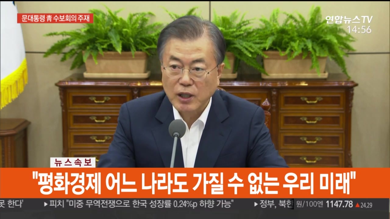 ムン談話のGoogle翻訳です。<br>文大統領:日本の貿易報復に、政府と企業と国民が心を一つに対応してくれている事に感謝します。<br>私たちは、今回のことを冷静に自分自身を見て、大韓民国を新たに跳躍させる契機にすべきです。<br>日本のの貿易報復を克服するためにだけに止まらず、日本経済超える大きな眼と非常な覚悟が必要です。部品素材産業の競争力を画期的高めるとともに、経済全般の活力をよみがえらせる幅広い経済政策を並行して進まなければます。<br>今回の補正に続き、来年度予算編成から、そのような政府の政策意志を十分に反映して行きます。<br>また、我々の経済の最大の長所である原動力を蘇らせ、さらに育てています。<br>韓国は、世界レベルの最高情報通信技術を備えたIT強国であり、革新的な能力にも世界的に高い評価を受けています。<br>第2のベンチャーブーム造成に革新創業に加速度がついていて、世界初の5G商用化を成し遂げました。<br>私たちは、将来のシステム半導体、電気自動車や水素自動車、バイオヘルスなどの新産業分野も注目に値する成長を見せています。<br>一方で、新南方政策と新北方政策を通じて輸出入を多様化するなど、私たちの経済領域も急速に広がっています。<br>このように革新的な成長に拍車をかけ、私たちの経済の外縁を広げることが根本的な解決策と考えています。<br>日本は決して私たちの経済の飛躍を防ぐことができません。むしろ経済大国に行くために私たちの意志をより育ててくれる刺激になります。<br>今回の事を契機に私たちは、平和経済の切実さを改めて確認することができました。<br>日本経済が、私たちの経済よりも優位にあるのは、経済規模と国内市場です。<br>南北間の経済協力に平和経済が実現すれば、私たちは一気に日本経済に追いつくことができます。<br>平和経済は南北関係と北米関係に屈曲できるによって容易にだけ、または放棄することはありません。<br>長い年月の対立と不信があっただけにしつこい意志を持って、お互い信頼を回復して進む事は可能です。<br>平和経済こそ、世界のどの国も持つことができない私たちだけの未来という確信を持って、南と北が一緒に努力していくと、非核化と一緒に韓半島の平和とその土台の上に、共同繁栄を実現することができるでしょう。<br>日本政府は、これまで痛い過去を乗り越え、互恵協力的な韓日関係を発展させてきた両国民に大きな傷を与えています。過去を覚えていない国、日本という批判も日本政府が自ら作成しています。<br>日本が自由貿易秩序を毀損することに対する国際社会の批判も非常に大きい。日本は経済力だけで世界の指導者の地位に立つことがないという点を悟らなければならなります。<br>私たちは、経済大国に行くための決意を新たにしながらも...以下略