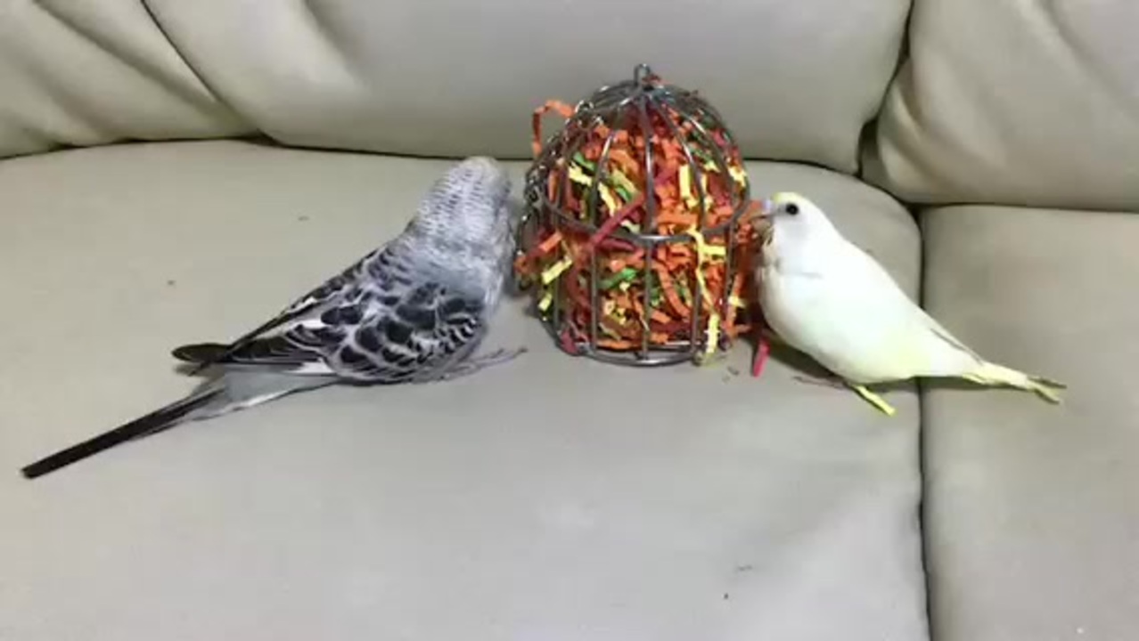 やはり大人インコの中では 幼いシルバーにはまだシンドそうなので、当初の計画どおりに週齢の近いサルファーと一緒にして見ようと考えました。この動画は初顔合わせ風景…やはり、セキセイの方が積極的ですが相性は良さそう、ゼオカラコンビぐらい時間を掛けて群れに戻していこうと思います。<br>そうそう、サルファーも挿し餌を卒業したので「宝石の鳥」に移行しました。<br>それにしても、親バカですが可愛い過ぎて眩暈がしそうです ..♡・:*+.\(//∇//)\.・:*+♡.:<br>↑と、計画していましたがシルバーが右足を庇う様子に病院へ…結果は大腿骨骨折。<br>小さなシルバーに過酷過ぎて凹みます⤵︎ なので、元動画よりも編集し直しています。<br>※ しばらくお休みしていたのに、コメントありがとうございます。 シルバーは手術という選択もありましたが、主治医の元を離れるのも不安ですし、シルバーよりポッキリいったジェイドも安静にしてくっつくのを待つで十分に完治したので、大きいリスクは避けました。<br>今は、無理はさせたくないのでパーチのないプラケース療養中ですが「出せ〜!」と大騒ぎですw 診察中も右足を庇っているのは見た目で解るのですが、ポッキリいっている訳ではなかったので触診では分からず、わずかに曲がっちゃいけない方に動く違和感を先生が感じとってくださり「レントゲン撮って見ましょう」で発覚…本当に見落としそうな僅かな骨折でした。 骨折箇所が筋肉に覆われた場所なのでギブス状態なんだと思います。でも、痛いのは解るので←胸骨骨折でペットボトルもまともに持てなかった経験者です私w 早く治って欲しくてもコーティングに1ヶ月 はかかるのはわかっているので、しばらくは無理しない環境作りに専念しようと思ます。<br><br>※ もっと早くあげるはずでしたが、ベリルの死で立ち直れなくて、しかもシルバーに骨折までさせてしまい…凹み過ぎて人間まで体調不良なんて情けない。<br>現グループの1期生で中心的な存在だったベリルだったので私のダメージが大きいです。わが家に黄ハルクインがいない状態になってしまいました…私のセキセイライフの原点なので、気持ちが落ち着いて良い子に巡り会えたら、またお迎えしたいな。<br>ヤキモチ焼きのベリル、大好きだよ! コパルを残してくれて、ありがとう!<br>可愛いアップのベリルがいる動画→<a href="https://www.nicovideo.jp/watch/sm35161713" class="watch">sm35161713</a><br>※ この動画には関係なかったのに、ベリルの動画まで見てコメントを入れて下さり、ありがとうございます。<br><br>* 宝石の鳥 <a href="https://www.nicovideo.jp/mylist/62527544" target="_blank" rel="noopener">mylist/62527544</a> / ピロロ \(・∀・)/ ピロロ <a href="https://www.nicovideo.jp/mylist/65969410" target="_blank" rel="noopener">mylist/65969410</a>