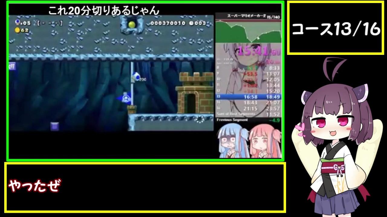 <span style="font-size: 16px;"><strong>すぐ抜かされる記録なので、きりたんの可愛さをメインにしてみました。<br><br>追記:</strong></span><span style="color: #ff0000; font-size: 16px;"><strong>かんたん16コースRTA 世界記録取りました!<a href="https://www.nicovideo.jp/watch/sm35615572" class="watch">sm35615572</a></strong></span><br><br><strong>走るきっかけになったスーパーマリオメーカーRTA動画<a href="https://www.nicovideo.jp/watch/sm29940980" target="_blank" rel="noopener nofollow">https://www.nicovideo.jp/watch/sm29940980</a><br><br>元世界記録走者のアドバイスまとめ<a href="https://ch.nicovideo.jp/sakenomi" target="_blank" rel="noopener nofollow">https://ch.nicovideo.jp/sakenomi</a><br><br>スピードランサイト:<a href="https://www.speedrun.com/smm2#Endless_Mode" target="_blank" rel="noopener nofollow">https://www.speedrun.com/smm2#Endless_Mode</a><br><br>お借りした立ち絵:<a href="https://seiga.nicovideo.jp/seiga/im8865978" target="_blank" rel="noopener">im8865978</a><br><br>タイマーでお借りした立ち絵:<a href="https://seiga.nicovideo.jp/seiga/im8327287" target="_blank" rel="noopener">im8327287</a><br><br>右下の可愛い姉妹の立ち絵:<a href="https://seiga.nicovideo.jp/seiga/im5274301" target="_blank" rel="noopener">im5274301</a></strong><br>