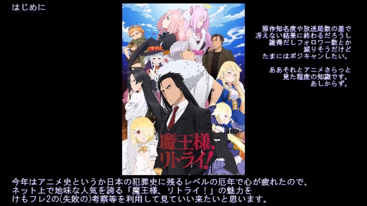 B級感が溢れるけど憎めない、一部で人気のあるこのアニメの魅力を考察してみました。<br>三幕構成:<a href="https://www.nicovideo.jp/watch/sm34764041" class="watch">sm34764041</a>、第5話の解説:<a href="https://www.nicovideo.jp/watch/sm34631105" class="watch">sm34631105</a>、シンボルの持つ力:<a href="https://www.nicovideo.jp/watch/sm34930794" class="watch">sm34930794</a><br>7話の感想:<a href="https://www.nicovideo.jp/watch/sm35601637" class="watch">sm35601637</a>
