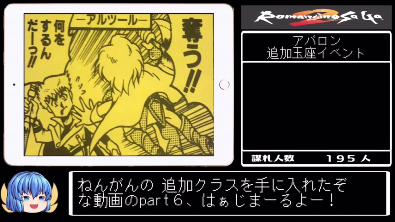 MacBookを買ったので初投稿です。<br>(編集に使ったとは言っていない)<br><br>新クラスが仲間になります!<br><span style="font-size: 16px;"><i>作中、『皆死ね矢』の成功率は斬Lv依存とぬかしていますが、<br>突Lv依存でした。(赤っ聡)</i></span><br>ご指摘兄貴ありがとナス!<br><br>みんな大好きロマサガ2のリマスター版を無印ipadで遊びます。<br>プレイ条件は3つです。<br> 1.追加要素のアイテム全回収<br> 2.追加ボス撃破<br> 3.追加クラスの常用<br>それ以外にはSFC版でおなじみのバグを試そうと考えております。<br><br>biimシステムを採用しております。(が、RT@ではございませぬ)<br>苦手な方はブラウザバックを推奨いたします。<br><br>それでは、ご視聴お願い致します!<br><br><span style="color: #ff0000; font-size: 14px;">※動画内に技・術・敵の情報がある場合、原則的にSFC版のものだとご了解下さい。<br>特に冥術絡みの術の威力が、リマスター版では異なっている可能性が高いです。</span><br><br>part1 <a href="https://www.nicovideo.jp/watch/sm35346751" class="watch">sm35346751</a><br>part5 <a href="https://www.nicovideo.jp/watch/sm35482426" class="watch">sm35482426</a><br>part6 こ↑こ↓<br>part7 <a href="https://www.nicovideo.jp/watch/sm35579814" class="watch">sm35579814</a><br><a href="https://www.nicovideo.jp/mylist/66031935" target="_blank" rel="noopener">mylist/66031935</a><br><br>———————————-<br>いも兄貴 様、ガーナ兄貴 様、一矢兄貴 様、デュアルミソ兄貴 様、<br>黒猫のわる兄貴 様、さいら兄貴 様、ふわふわさん兄貴 様、<br>arindal兄貴 様、White_Cat兄貴 様、のや兄貴 様、<br>こわし兄貴 様、zettan兄貴 様、みっく兄貴 様、ポンデン兄貴 様、<br>関場武雄兄貴 様、めそ兄貴 様<br><br>広告ありがとナス!