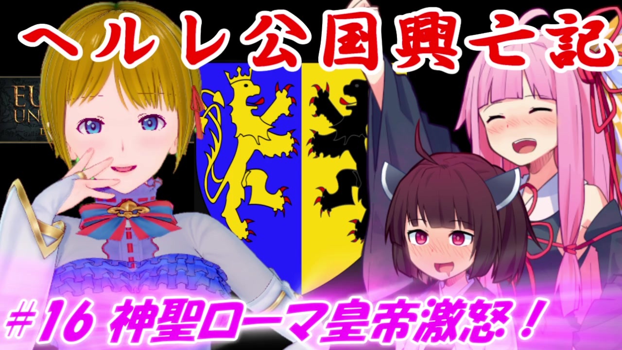 イングランドとの戦争に勝利したものの、ヘルレ公国はなんの対価も得られなかった。<br>復興のため内政にいそしむ中、エノーのジャクリーン公爵からルクセンブルク攻略への参戦を要請されるのだった。<br><br>(今回の動画のタイムライン:1536年9月21日~1545年2月26日)<br><br><span style="color: #ff0000;"><strong>プレイ時間はたったの1200時間の初心者なので、やさしくシテ♂ください。<br>ヴァルブルガちゃんの成人した姿はツイッターで公開しています。</strong></span><br><strong>いつも多額の広告をして頂き、ありがとうございます。</strong><br><span style="color: #ff0000;"><strong>このゲームはわからんという人は:</strong></span><a href="https://www.nicovideo.jp/watch/sm32733376" class="watch">sm32733376</a><br><br>ガチ保守の人のゲーム実況1話リンク:<a href="https://www.nicovideo.jp/mylist/53413022" target="_blank" rel="noopener">mylist/53413022</a> <br>前:<a href="https://www.nicovideo.jp/watch/sm35516697" class="watch">sm35516697</a> <a href="https://www.nicovideo.jp/mylist/65734988" target="_blank" rel="noopener">mylist/65734988</a> 次:<a href="https://www.nicovideo.jp/watch/sm35571818" class="watch">sm35571818</a><br>ヘルレ公国興亡記シリーズリスト:<a href="https://www.nicovideo.jp/series/2057" target="_blank" rel="noopener">series/2057</a><br><br>【状況説明】<br>ゲーム開始年月日:1444年11月11日<br>プレイ国家:ヘルレ<br><br>導入DLC<br>Art of War : El Dorado : Common Sense : Mandate of Heaven : Right of Man : Wealth of nations : The Cossacks : Dharma<br><br>導入MOD<br>JPMOD Main 1:Fonts and UI<br>JPMOD Main 2:Text<br>+JPMOD Font Gothic for 1.28<br>++JPMOD Map Font Kaku Gothic<br>Bullets Peace Terms JP<br>Graphical Map Improvements<br>Vanilla'd-The Grand Exhibition1から4<br><br>日本語MODは <a href="https://paradoxian-japan-mod.com/" target="_blank" rel="noopener nofollow">https://paradoxian-japan-mod.com/</a><br>のものを使わせていただいております。<br><br>進捗はバカッターにてお知らせしています:<a href="https://twitter.com/Kagami_Shusetsu" target="_blank" rel="noopener nofollow">https://twitter.com/Kagami_Shusetsu</a>