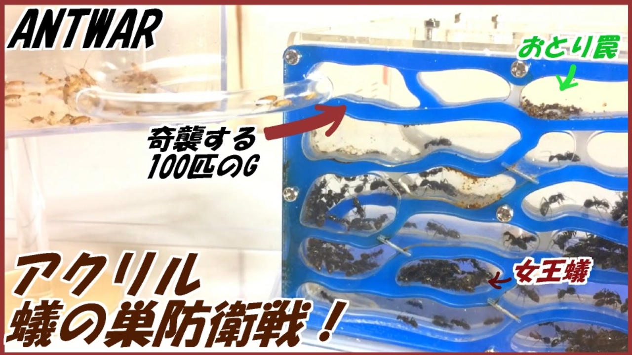 <a href="https://www.nicovideo.jp/watch/sm35523152" class="watch">sm35523152</a><span style="color: #000000; font-size: 14px;">←もどる 次へ→</span><a href="https://www.nicovideo.jp/watch/sm35567294" class="watch">sm35567294</a><br><span style="color: #000000; font-size: 14px;">火曜・木曜・土曜・日曜の週4回更新。<br><br>蟻戦争マイリスト→</span><span style="color: #006699; font-size: 14px;"><u><a href="https://www.nicovideo.jp/mylist/56298874" target="_blank" rel="noopener">mylist/56298874</a></u></span><br><br><span style="color: #000000; font-size: 14px;">∧__∧<br>(・ω・)<お盆行事おわった!みんなただいま~(∩´∀`)∩<br><br>蟻は高度な社会性を持つ昆虫である。<br>~The ANT is advanced social insect.~<br><br>卵を産む役、飼育する役、兵隊役などに分かれ、1つのコミュニティを形成する。<br>~ANTs constitute one comunity.ANTs have the part(childbirth,bring<br>up,military service) in the community.~<br><br>本来出会わないはずの2つの種族が遭遇した時、我々は彼らの未知なる知性を発見するかもしれない。~ We may discover their intelligences when two species encounter.~</span>
