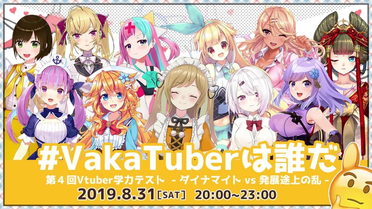 <span style="font-size: 18px;"><strong>令和元年 8月31日(土)20:00~</strong></span>行われる、学力テストの予習と告知の動画になります。<br>各参加者さんを1分程度で紹介していますので、もし興味がありましたら、<br>参加者さんの各チャンネルへ行って、他の動画もご覧下さい!!<br>チャンネル登録もよろしくお願いします。<br><br>主催者及び配信チャンネル<br><span style="font-size: 18px;"><strong>因幡はねる:</strong></span><span style="font-size: 16px;"><strong><a href="https://www.youtube.com/channel/UC0Owc36U9lOyi9Gx9Ic-4qg" target="_blank" rel="noopener nofollow">https://www.youtube.com/channel/UC0Owc36U9lOyi9Gx9Ic-4qg</a></strong></span><br><br>《参加者一覧》(敬称略)<br>発展途上チーム<br>湊あくあ:<a href="https://www.youtube.com/channel/UC1opHUrw8rvnsadT-iGp7Cg" target="_blank" rel="noopener nofollow">https://www.youtube.com/channel/UC1opHUrw8rvnsadT-iGp7Cg</a><br>鷹宮リオン:<a href="https://www.youtube.com/channel/UCV5ZZlLjk5MKGg3L0n0vbzw" target="_blank" rel="noopener nofollow">https://www.youtube.com/channel/UCV5ZZlLjk5MKGg3L0n0vbzw</a><br>御伽原江良:<a href="https://www.youtube.com/channel/UCwQ9Uv-m8xkE5PzRc7Bqx3Q" target="_blank" rel="noopener nofollow">https://www.youtube.com/channel/UCwQ9Uv-m8xkE5PzRc7Bqx3Q</a><br>ピンキーポップヘップバーン:<a href="https://www.youtube.com/channel/UC1pR2ig6NhndhvicEgclNdA" target="_blank" rel="noopener nofollow">https://www.youtube.com/channel/UC1pR2ig6NhndhvicEgclNdA</a><br>かしこまり:<a href="https://www.youtube.com/channel/UCfiK42sBHraMBK6eNWtsy7A" target="_blank" rel="noopener nofollow">https://www.youtube.com/channel/UCfiK42sBHraMBK6eNWtsy7A</a><br><br>ダイナマイトチーム<br>椎名唯華:<a href="https://www.youtube.com/channel/UC_4tXjqecqox5Uc05ncxpxg" target="_blank" rel="noopener nofollow">https://www.youtube.com/channel/UC_4tXjqecqox5Uc05ncxpxg</a><br>皇牙サキ:<a href="https://www.youtube.com/channel/UC_4SADjnjt22NO-fTFN6prQ" target="_blank" rel="noopener nofollow">https://www.youtube.com/channel/UC_4SADjnjt22NO-fTFN6prQ</a><br>朝ノ瑠璃:<a href="https://www.youtube.com/channel/UCODNLyn3L83wEmC0DLL0cxA" target="_blank" rel="noopener nofollow">https://www.youtube.com/channel/UCODNLyn3L83wEmC0DLL0cxA</a><br>由宇霧:<a href="https://www.youtube.com/channel/UCMxKcUjeTEcgHmC9Zzn3R4w" target="_blank" rel="noopener nofollow">https://www.youtube.com/channel/UCMxKcUjeTEcgHmC9Zzn3R4w</a><br>銀河アリス:<a href="https://www.youtube.com/channel/UCT1AQFit-Eaj_YQMsfV0RhQ" target="_blank" rel="noopener nofollow">https://www.youtube.com/channel/UCT1AQFit-Eaj_YQMsfV0RhQ</a><br><br>追記:1万再生達成しました!ありがとうございます!!<br>多くのコメント・広告・ツイートありがとうございます!!