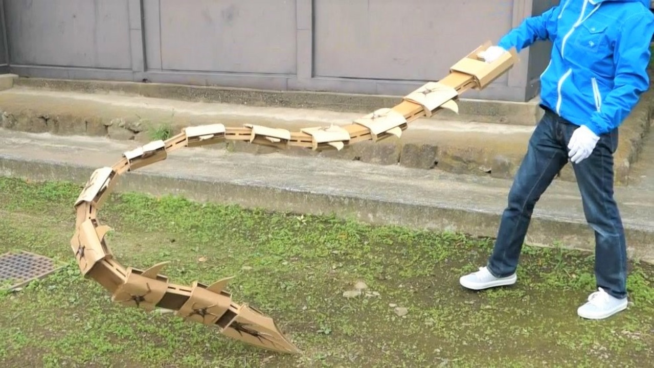 <span style="color: #0d0d0d; font-size: 14px;">東京喰種トーキョーグールより、喰種捜査官・真戸呉緒(まどくれお)のクインケ【フエグチ壱】をダンボールで作ります。</span><br><a href="https://www.marv.jp/special/tokyoghoul/" target="_blank" rel="noopener nofollow">https://www.marv.jp/special/tokyoghoul/</a><br><span style="color: #0d0d0d; font-size: 14px;">原作のように自在に伸縮するギミックを再現しました。<br>自由度の高い連結設計により、蛇のように滑らかに曲がります。<br>先端部分からグリップまで通した釣り糸を引っ張ることで縮みます。<br><br>釣り糸はPEラインを使用しています。ナイロンやフロロカーボンは強度が足りないと思います。<br>とてもデリケートな構造なので、動画のように振り回すと確実に壊れます。<br>実際に作った際は伸縮動作のみお楽しみください。<br>ちなみに撮影で振り回した作品は大破しました。<br><br>全長2.4m、伸ばすと3.6mになります。<br>※伸縮長1260mmです(縮めるときに約1.2m糸を引っ張る事になります)<br>1コマあたりのストロークが120mmなので、体格やご予算に応じて連結数を変えてください。(参考に僕の身長は179㎝です)<br><br>参考図面はこちらからダウンロードできます。</span><br><a href="https://drive.google.com/open?id=1mmR..." target="_blank" rel="noopener nofollow">https://drive.google.com/open?id=1mmR...</a><br><span style="color: #0d0d0d; font-size: 14px;">ダンボールの厚みは5mmを前提に設計されています。<br>また、これは参考図ですので、負荷がかかりやすい部分はさらに補強を行ってください。※技術のある方はダンボール以外の材料を使っても良いかもしれません。<br>大きい部品は分割してあります。青い点線を繋いでお使いください。</span>