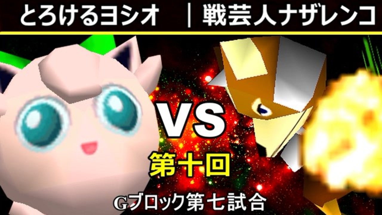 どちらも2連敗中!絶対に負けられない戦いが今ここにある<br>※どちらが勝つかアンケ結果(Twitter調べ) <br>とろけるヨシオ(PU) 42% VS 戦芸人ナザレンコ(FO) 58%<br><br><span style="color: #ff0000; font-size: 13px;"><u>※プロスマブラーになりました→</u></span><span style="color: #000000; font-size: 13px;"> </span><a href="https://bit.ly/2YJCWYA" target="_blank" rel="noopener nofollow">https://bit.ly/2YJCWYA</a><br><span style="color: #0000ff;"><u>※64スマブラCPUトナメ実況のwikiができた模様</u></span><span style="color: #0000ff;">→</span> <a href="https://wiki3.jp/cpu_64" target="_blank" rel="noopener nofollow">https://wiki3.jp/cpu_64</a><br><br><span style="color: #ff0000; font-size: 24px;"><strong>次→</strong></span>【<a href="https://www.nicovideo.jp/watch/sm35562331" class="watch">sm35562331</a>】※毎日投稿<br><br>前【<a href="https://www.nicovideo.jp/watch/sm35552647" class="watch">sm35552647</a>】 <span style="color: #000000; font-size: 13px;">Gブロック第一試合【</span><span style="color: #006699; font-size: 14px;"><a href="https://www.nicovideo.jp/watch/sm35330232" class="watch">sm35330232</a></span><span style="color: #000000; font-size: 13px;">】</span> Aブロック第一試合【<a href="https://www.nicovideo.jp/watch/sm35254266" class="watch">sm35254266</a>】 <br><span style="color: #000000; font-size: 14px;">第十回選手紹介動画【</span><span style="color: #006699; font-size: 14px;"><a href="https://www.nicovideo.jp/watch/sm35240933" class="watch">sm35240933</a></span><span style="color: #000000; font-size: 14px;">】</span><br>第十回マイリスト【<a href="https://www.nicovideo.jp/mylist/65788927" target="_blank" rel="noopener">mylist/65788927</a>】<br>64スマブラCPUトナメ実況part1まとめ【<a href="https://www.nicovideo.jp/mylist/60846861" target="_blank" rel="noopener">mylist/60846861</a>】<br>その他シリーズ【<a href="https://www.nicovideo.jp/mylist/12965027" target="_blank" rel="noopener">mylist/12965027</a>】<br><br><span style="color: #00bfff;"><strong>Twitter</strong></span>【<a href="https://twitter.com/niconicopppppp" target="_blank" rel="noopener nofollow">https://twitter.com/niconicopppppp</a> 】<br><span style="color: #ff4500;"><strong>チャンネル</strong></span>【<a href="https://ch.nicovideo.jp/p-desu" target="_blank" rel="noopener">ch.nicovideo.jp/p-desu</a>】