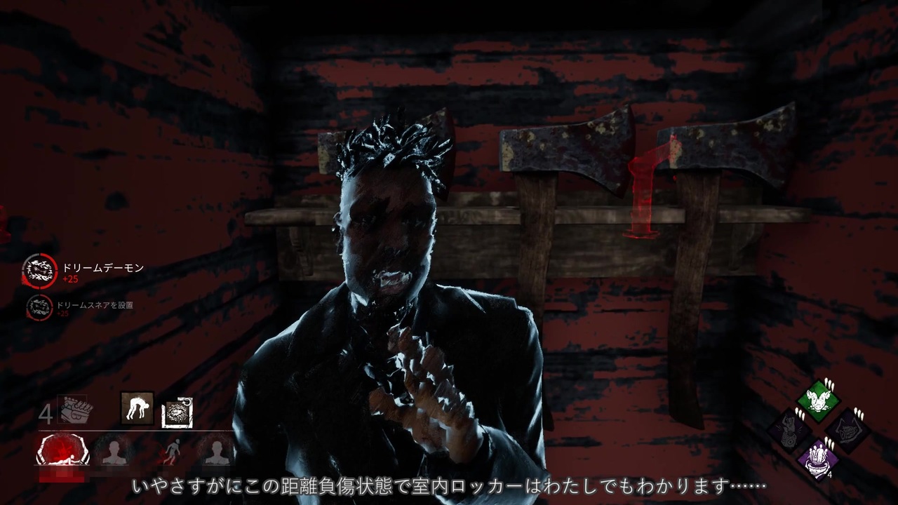 今日から1連休です<br><br><a href="https://www.nicovideo.jp/watch/sm35522700" class="watch">sm35522700</a>←前回 リスト <a href="https://www.nicovideo.jp/mylist/62705262" target="_blank" rel="noopener">mylist/62705262</a> 次回→<a href="https://www.nicovideo.jp/watch/sm35588029" class="watch">sm35588029</a><br><br>ランク1はふわっと達成したのでしばらくはパーク相性の研究です<br>とりあえず狡猾は使いたいです<br><br>以下パーク説明という名のコピペ<br><br>・呪術:破滅<br>トーテムの1つに呪いが付与される<br>全ての生存者に発電機の修理に以下のペナルティを与える<br>ただし、この効果は付与された呪いのトーテムがある間持続する<br><br>・Goodチェックの場合は発電機のゲージを3・4・5%減少する<br>・Greatチェック時の発電機のゲージ加速を無くす<br><br>・戦慄<br>生存者を担いだ後、生存者によって修理中でない発電機すべてがエンティティによりブロックされ、次の16秒間修理不能になる。<br>ブロックされている発電機は白いオーラでハイライトされる。<br>このパークは100・80・60秒ごとに発動可能。<br><br>・選択は君次第だ<br>フック救助成功時に32m以上離れてる場合、効果発動。<br>フック救出を行った生存者を一撃で這いずり状態にする。<br>ただし、このパーク効果は40・50・60秒の時間制限がある<br><br>発動すると、効果の再使用までに60秒必要。<br><br>・イタチが飛び出した<br>生存者をフックに吊るすと効果発動。<br>発電機を破壊行動した際、即座に修理進行率を25%後退させる。<br>毎回吊るした後から1台目の発電機の破壊行動のみ有効。<br>このパーク効果は40・50・60秒の時間制限がある。<br><br>・バーベキュー&チリ<br>生存者をフックに吊るすと効果発動。<br>吊るしたフックから40m以上離れている生存者を4秒間可視表示する。<br>また各生存者を初めて吊るすと専用ポイントを1個取得する。(最大2・3・4個)<br>1個につき最終獲得BPが25%増加する。 (最大:50・75・100%)<br><br>・ずさんな肉屋<br>生存者に攻撃を与えると効果発動<br>生存者の出血痕が残る頻度が少し・普通・大きく上昇<br>更に重傷状態(治療速度-20%)を付与する。<br>この重傷状態は治療を終えると解除される。<br>(負傷状態から這いずり状態にした場合、この重傷状態の効果は重複しない)