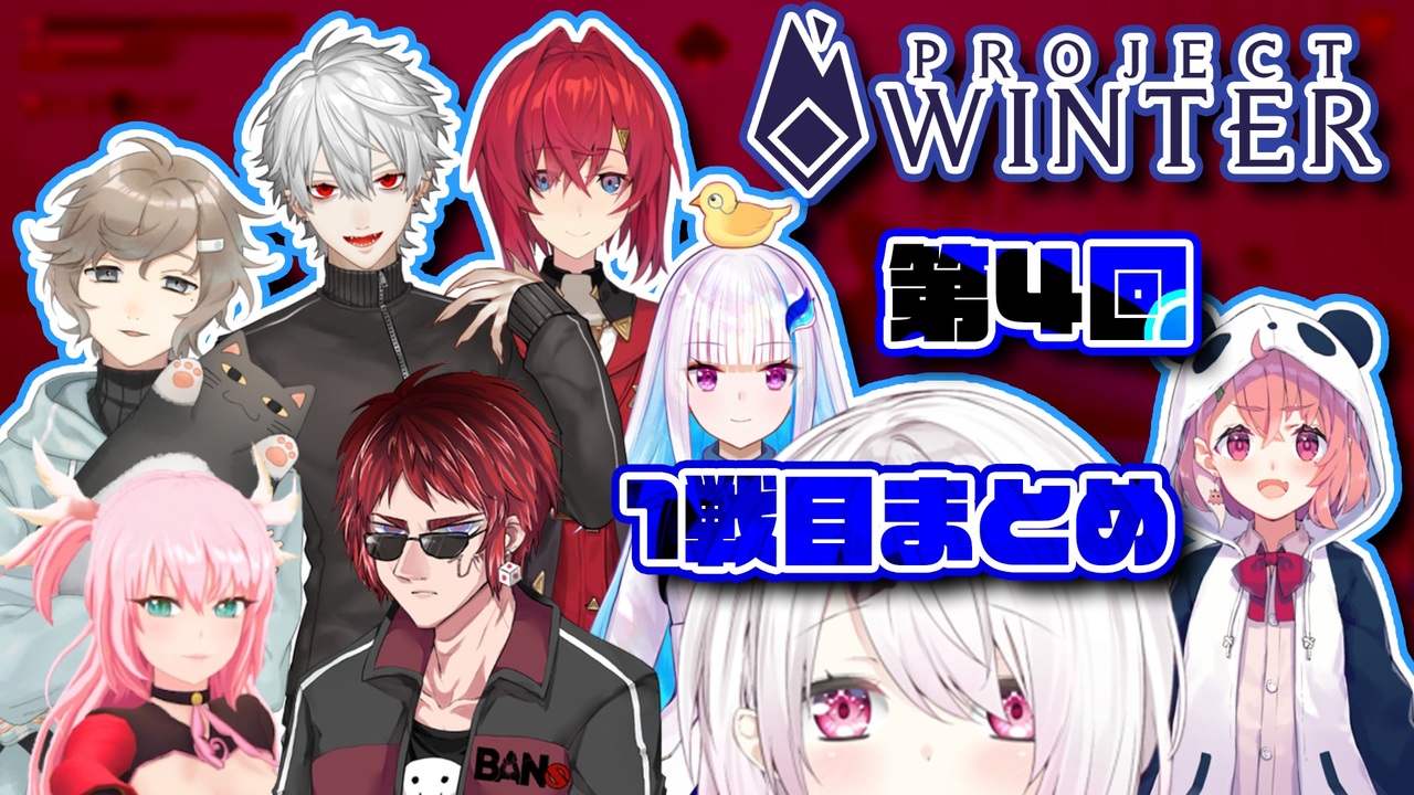 サバイバーの通信機使用を制限して行われた第4回の1戦目です。<br>サバイバーの練度が高まる中トレイターがどう動くのか必見。<br><br>※Youtubeはこちら⇒<a href="https://youtu.be/d0KOQnPQH7c" target="_blank" rel="noopener nofollow">https://youtu.be/d0KOQnPQH7c</a><br><br><a href="https://www.nicovideo.jp/watch/sm35474056" class="watch">sm35474056</a>←第3回3戦目 <span style="color: #000000; font-size: 13px;">第4回2戦目→</span><a href="https://www.nicovideo.jp/watch/sm35570060" class="watch">sm35570060</a><br>※今までのProject Winterまとめ⇒<a href="https://www.nicovideo.jp/mylist/65964009" target="_blank" rel="noopener">mylist/65964009</a><br><br>【本編】約2時間00分【8/18配信】<br>【笹木咲視点】<br><a href="https://youtu.be/PkNrtlnXnic" target="_blank" rel="noopener nofollow">https://youtu.be/PkNrtlnXnic</a><br><br>【YouTube】<br>【葛葉】<br><a href="https://www.youtube.com/channel/UCSFCh5NL4qXrAy9u-u2lX3g" target="_blank" rel="noopener nofollow">https://www.youtube.com/channel/UCSFCh5NL4qXrAy9u-u2lX3g</a><br>【叶】<br><a href="https://www.youtube.com/channel/UCspv01oxUFf_MTSipURRhkA" target="_blank" rel="noopener nofollow">https://www.youtube.com/channel/UCspv01oxUFf_MTSipURRhkA</a><br>【笹木咲】<br><a href="https://www.youtube.com/channel/UCoztvTULBYd3WmStqYeoHcA" target="_blank" rel="noopener nofollow">https://www.youtube.com/channel/UCoztvTULBYd3WmStqYeoHcA</a><br>【椎名唯華】<br><a href="https://www.youtube.com/channel/UC_4tXjqecqox5Uc05ncxpxg" target="_blank" rel="noopener nofollow">https://www.youtube.com/channel/UC_4tXjqecqox5Uc05ncxpxg</a><br>【リゼ・ヘルエスタ】<br><a href="https://www.youtube.com/channel/UCZ1xuCK1kNmn5RzPYIZop3w" target="_blank" rel="noopener nofollow">https://www.youtube.com/channel/UCZ1xuCK1kNmn5RzPYIZop3w</a><br>【アンジュ・カトリーナ】<br><a href="https://www.youtube.com/channel/UCHVXbQzkl3rDfsXWo8xi2qw" target="_blank" rel="noopener nofollow">https://www.youtube.com/channel/UCHVXbQzkl3rDfsXWo8xi2qw</a><br>【ふぇありす】<br><a href="https://www.youtube.com/channel/UC2Rr7mILebYLTjd38DNNUTw" target="_blank" rel="noopener nofollow">https://www.youtube.com/channel/UC2Rr7mILebYLTjd38DNNUTw</a><br>【天開司】<br><a href="https://www.youtube.com/channel/UCZYyhgoV314CM14zBD6vd4A" target="_blank" rel="noopener nofollow">https://www.youtube.com/channel/UCZYyhgoV314CM14zBD6vd4A</a><br><br>何かご意見あればこちらへ⇒<a href="https://twitter.com/aiaiaisssss" target="_blank" rel="noopener nofollow">https://twitter.com/aiaiaisssss</a>