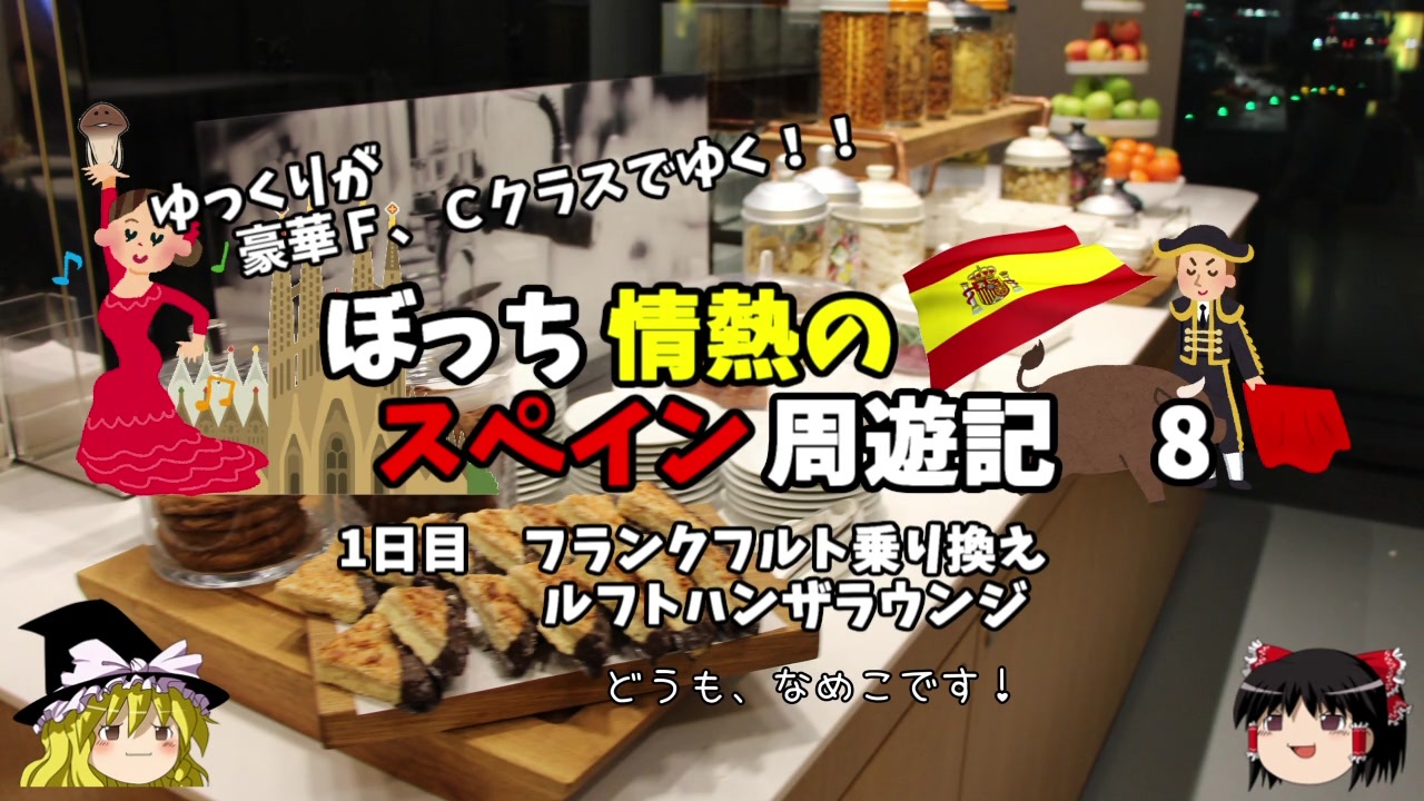 <span style="color: #ff0000; font-size: medium;"><u>※Youtubeで1話分、先行配信中 </u></span><br><span style="color: #0000ff; font-size: medium;"> <a href="http://www.youtube.com/c/なめこのぼっち旅" target="_blank" rel="noopener nofollow">http://www.youtube.com/c/なめこのぼっち旅</a></span> <br><br>快適なANAファーストクラスを後にし、<br>目的地のマドリードに向かうべく、フランクフルトで乗り換えます!<br><br><span style="color: #ff0000;">コミュニティー→co2910020</span><br><br> twitter→<a href="https://twitter.com/ryontan" target="_blank" rel="noopener nofollow">https://twitter.com/ryontan</a><br><br><a href="https://www.nicovideo.jp/watch/sm35513558" class="watch">sm35513558</a>←前回 <span style="color: #ff0000;">次回 第9話→</span><a href="https://www.nicovideo.jp/watch/sm35589545" class="watch">sm35589545</a><br><br>解説・雑談系→<a href="https://www.nicovideo.jp/mylist/63171869" target="_blank" rel="noopener">mylist/63171869</a><br>今作 スペイン周遊記→<a href="https://www.nicovideo.jp/mylist/64537827" target="_blank" rel="noopener">mylist/64537827</a><br>前作 韓国トルコ旅行記→<a href="https://www.nicovideo.jp/mylist/63654428" target="_blank" rel="noopener">mylist/63654428</a><br>車中泊旅行記→<a href="https://www.nicovideo.jp/mylist/54706524" target="_blank" rel="noopener">mylist/54706524</a><br>久米島(沖縄)旅行記→<a href="https://www.nicovideo.jp/mylist/63059251" target="_blank" rel="noopener">mylist/63059251</a><br>イギリスタイ旅行記→<a href="https://www.nicovideo.jp/mylist/60044833" target="_blank" rel="noopener">mylist/60044833</a><br>クルーズ旅行記→<a href="https://www.nicovideo.jp/mylist/57397685" target="_blank" rel="noopener">mylist/57397685</a><br>ドイツ周遊記→<a href="https://www.nicovideo.jp/mylist/54938346" target="_blank" rel="noopener">mylist/54938346</a><br>北海道旅行記→<a href="https://www.nicovideo.jp/mylist/52618057" target="_blank" rel="noopener">mylist/52618057</a><br>アメリカ横断記→<a href="https://www.nicovideo.jp/mylist/48621785" target="_blank" rel="noopener">mylist/48621785</a><br>イタリア周遊記→<a href="https://www.nicovideo.jp/mylist/45763559" target="_blank" rel="noopener">mylist/45763559</a><br>NY旅行記→<a href="https://www.nicovideo.jp/mylist/44343854" target="_blank" rel="noopener">mylist/44343854</a>