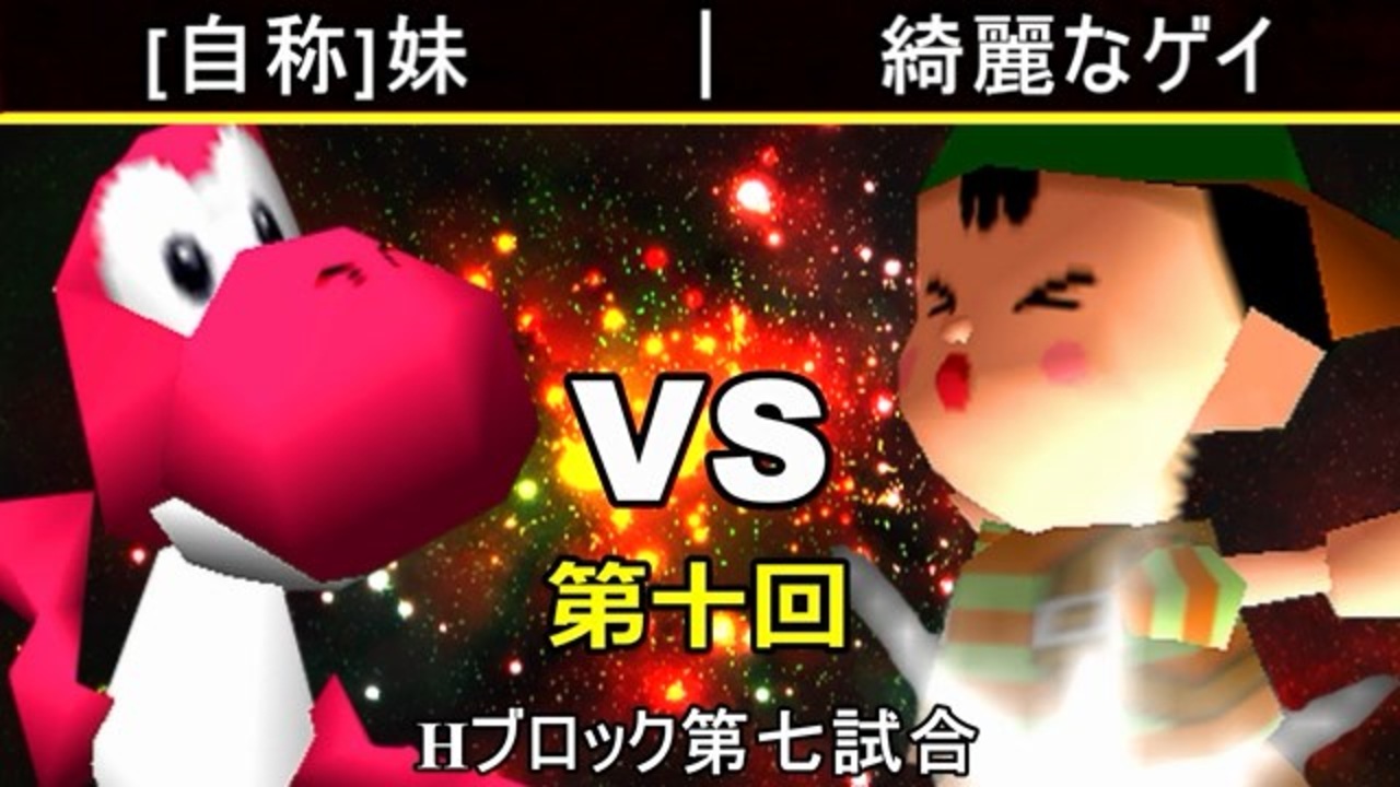 自称ゲイ<br>※どちらが勝つかアンケ結果(Twitter調べ) <br>[自称]妹(YO) 57% VS 綺麗なゲイ(NE) 43%<br><br><span style="color: #ff0000; font-size: 13px;"><u>※プロスマブラーになりました→</u></span><span style="color: #000000; font-size: 13px;"> </span><a href="https://bit.ly/2YJCWYA" target="_blank" rel="noopener nofollow">https://bit.ly/2YJCWYA</a><br><span style="color: #0000ff;"><u>※64スマブラCPUトナメ実況のwikiができた模様</u></span><span style="color: #0000ff;">→</span> <a href="https://wiki3.jp/cpu_64" target="_blank" rel="noopener nofollow">https://wiki3.jp/cpu_64</a><br><br><span style="color: #ff0000; font-size: 24px;"><strong>次→</strong></span>【<a href="https://www.nicovideo.jp/watch/sm35575814" class="watch">sm35575814</a>】※毎日投稿<br><br>前【<a href="https://www.nicovideo.jp/watch/sm35566592" class="watch">sm35566592</a>】 <span style="color: #000000; font-size: 13px;">Hブロック第一試合【</span><span style="color: #006699; font-size: 14px;"><a href="https://www.nicovideo.jp/watch/sm35347249" class="watch">sm35347249</a></span><span style="color: #000000; font-size: 13px;">】</span> Aブロック第一試合【<a href="https://www.nicovideo.jp/watch/sm35254266" class="watch">sm35254266</a>】 <br><span style="color: #000000; font-size: 14px;">第十回選手紹介動画【</span><span style="color: #006699; font-size: 14px;"><a href="https://www.nicovideo.jp/watch/sm35240933" class="watch">sm35240933</a></span><span style="color: #000000; font-size: 14px;">】</span><br>第十回マイリスト【<a href="https://www.nicovideo.jp/mylist/65788927" target="_blank" rel="noopener">mylist/65788927</a>】<br>64スマブラCPUトナメ実況part1まとめ【<a href="https://www.nicovideo.jp/mylist/60846861" target="_blank" rel="noopener">mylist/60846861</a>】<br>その他シリーズ【<a href="https://www.nicovideo.jp/mylist/12965027" target="_blank" rel="noopener">mylist/12965027</a>】<br><br><span style="color: #00bfff;"><strong>Twitter</strong></span>【<a href="https://twitter.com/niconicopppppp" target="_blank" rel="noopener nofollow">https://twitter.com/niconicopppppp</a> 】<br><span style="color: #ff4500;"><strong>チャンネル</strong></span>【<a href="https://ch.nicovideo.jp/p-desu" target="_blank" rel="noopener">ch.nicovideo.jp/p-desu</a>】