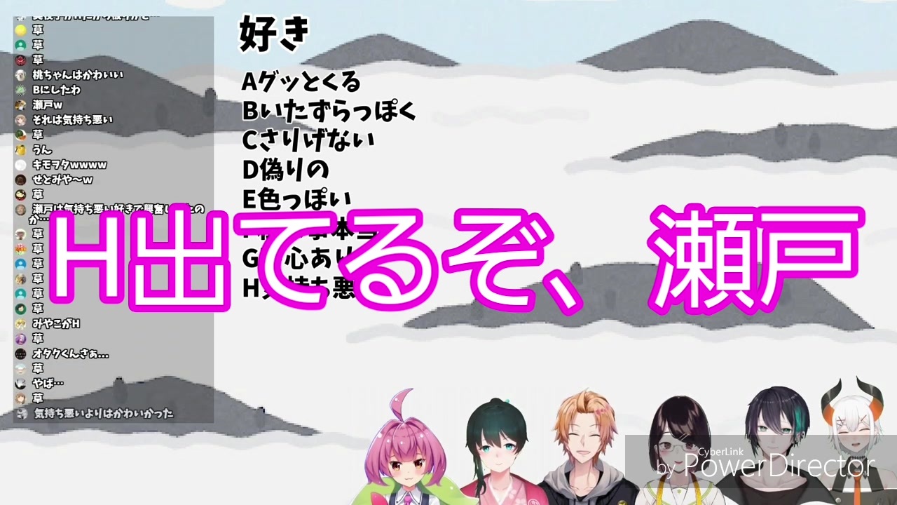 オフコラボにて一級H建築士&H認定士の称号を得てしまった瀬戸美夜子さんの限界オタクと化したシーン+αです。<br><br>▼元動画(安土桃さんのチャンネル)<br><a href="https://youtu.be/HfRgbzo--Wk" target="_blank" rel="noopener nofollow">https://youtu.be/HfRgbzo--Wk</a><br><br>▼参加メンバー<br>安土桃 <a href="https://www.youtube.com/channel/UC6TfqY40Xt1Y0J-N18c85qQ" target="_blank" rel="noopener nofollow">https://www.youtube.com/channel/UC6TfqY40Xt1Y0J-N18c85qQ</a><br>小野町春香 <a href="https://www.youtube.com/channel/UCg63a3lk6PNeWhVvMRM_mrQ" target="_blank" rel="noopener nofollow">https://www.youtube.com/channel/UCg63a3lk6PNeWhVvMRM_mrQ</a><br>神田笑一 <a href="https://www.youtube.com/channel/UCWz0CSYCxf4MhRKPDm220AQ" target="_blank" rel="noopener nofollow">https://www.youtube.com/channel/UCWz0CSYCxf4MhRKPDm220AQ</a><br>瀬戸美夜子 <a href="https://www.youtube.com/channel/UCHK5wkevfaGrPr7j3g56Jmw" target="_blank" rel="noopener nofollow">https://www.youtube.com/channel/UCHK5wkevfaGrPr7j3g56Jmw</a><br>黛灰 <a href="https://www.youtube.com/channel/UCb5JxV6vKlYVknoJB8TnyYg" target="_blank" rel="noopener nofollow">https://www.youtube.com/channel/UCb5JxV6vKlYVknoJB8TnyYg</a><br>レヴィ・エリファ <a href="https://www.youtube.com/channel/UCtnO2N4kPTXmyvedjGWdx3Q" target="_blank" rel="noopener nofollow">https://www.youtube.com/channel/UCtnO2N4kPTXmyvedjGWdx3Q</a><br><br>※一部ライバーさんのお顔に広告が被ってしまっております。ご了承ください。<br>※転載禁止<br />投稿したもの<br><a href="https://www.nicovideo.jp/mylist/66433708" target="_blank" rel="noopener">mylist/66433708</a><br><br>本動画はにじさんじ二次創作ガイドラインを元に作製しています。<br>ガイドライン変更等、有事の際に個人で責任が負えるようコメント付きでも転載はご遠慮いただいています。
