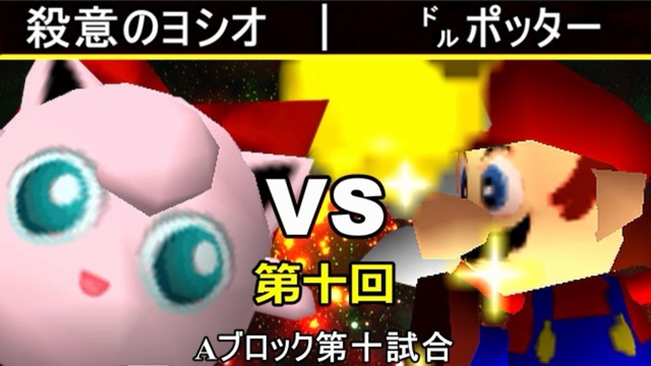第八回では㌦ポッターが勝っているが果たして<br>※どちらが勝つかアンケ結果(Twitter調べ) <br>殺意のヨシオ(PU) 77% VS ㌦ポッター(MA) 23%<br><br><span style="color: #ff0000; font-size: 13px;"><u>※プロスマブラーになりました→</u></span><span style="color: #000000; font-size: 13px;"> </span><a href="https://bit.ly/2YJCWYA" target="_blank" rel="noopener nofollow">https://bit.ly/2YJCWYA</a><br><span style="color: #0000ff;"><u>※64スマブラCPUトナメ実況のwikiができた模様</u></span><span style="color: #0000ff;">→</span> <a href="https://wiki3.jp/cpu_64" target="_blank" rel="noopener nofollow">https://wiki3.jp/cpu_64</a><br><br><span style="color: #ff0000; font-size: 24px;"><strong>次→</strong></span>【<a href="https://www.nicovideo.jp/watch/sm35585359" class="watch">sm35585359</a>】※毎日投稿<br><br>前【<a href="https://www.nicovideo.jp/watch/sm35575897" class="watch">sm35575897</a>】 Aブロック第一試合【<a href="https://www.nicovideo.jp/watch/sm35254266" class="watch">sm35254266</a>】 <br><span style="color: #000000; font-size: 14px;">第十回選手紹介動画【</span><span style="color: #006699; font-size: 14px;"><a href="https://www.nicovideo.jp/watch/sm35240933" class="watch">sm35240933</a></span><span style="color: #000000; font-size: 14px;">】</span><br>第十回マイリスト【<a href="https://www.nicovideo.jp/mylist/65788927" target="_blank" rel="noopener">mylist/65788927</a>】<br>64スマブラCPUトナメ実況part1まとめ【<a href="https://www.nicovideo.jp/mylist/60846861" target="_blank" rel="noopener">mylist/60846861</a>】<br>その他シリーズ【<a href="https://www.nicovideo.jp/mylist/12965027" target="_blank" rel="noopener">mylist/12965027</a>】<br><br><span style="color: #00bfff;"><strong>Twitter</strong></span>【<a href="https://twitter.com/niconicopppppp" target="_blank" rel="noopener nofollow">https://twitter.com/niconicopppppp</a> 】<br><span style="color: #ff4500;"><strong>チャンネル</strong></span>【<a href="https://ch.nicovideo.jp/p-desu" target="_blank" rel="noopener">ch.nicovideo.jp/p-desu</a>】