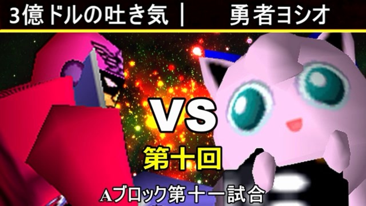 勇者ヨシオ崖っぷちぃ!<br>※どちらが勝つかアンケ結果(Twitter調べ) <br>3億ドルの吐き気(FA) 64% VS 勇者ヨシオ(PU) 36%<br><br><span style="color: #ff0000; font-size: 13px;"><u>※プロスマブラーになりました→</u></span><span style="color: #000000; font-size: 13px;"> </span><a href="https://bit.ly/2YJCWYA" target="_blank" rel="noopener nofollow">https://bit.ly/2YJCWYA</a><br><span style="color: #0000ff;"><u>※64スマブラCPUトナメ実況のwikiができた模様</u></span><span style="color: #0000ff;">→</span> <a href="https://wiki3.jp/cpu_64" target="_blank" rel="noopener nofollow">https://wiki3.jp/cpu_64</a><br><br><span style="color: #ff0000; font-size: 24px;"><strong>次→</strong></span>【<a href="https://www.nicovideo.jp/watch/sm35594649" class="watch">sm35594649</a>】※毎日投稿<br><br>前【<a href="https://www.nicovideo.jp/watch/sm35585276" class="watch">sm35585276</a>】 Aブロック第一試合【<a href="https://www.nicovideo.jp/watch/sm35254266" class="watch">sm35254266</a>】 <br><span style="color: #000000; font-size: 14px;">第十回選手紹介動画【</span><span style="color: #006699; font-size: 14px;"><a href="https://www.nicovideo.jp/watch/sm35240933" class="watch">sm35240933</a></span><span style="color: #000000; font-size: 14px;">】</span><br>第十回マイリスト【<a href="https://www.nicovideo.jp/mylist/65788927" target="_blank" rel="noopener">mylist/65788927</a>】<br>64スマブラCPUトナメ実況part1まとめ【<a href="https://www.nicovideo.jp/mylist/60846861" target="_blank" rel="noopener">mylist/60846861</a>】<br>その他シリーズ【<a href="https://www.nicovideo.jp/mylist/12965027" target="_blank" rel="noopener">mylist/12965027</a>】<br><br><span style="color: #00bfff;"><strong>Twitter</strong></span>【<a href="https://twitter.com/niconicopppppp" target="_blank" rel="noopener nofollow">https://twitter.com/niconicopppppp</a> 】<br><span style="color: #ff4500;"><strong>チャンネル</strong></span>【<a href="https://ch.nicovideo.jp/p-desu" target="_blank" rel="noopener">ch.nicovideo.jp/p-desu</a>】