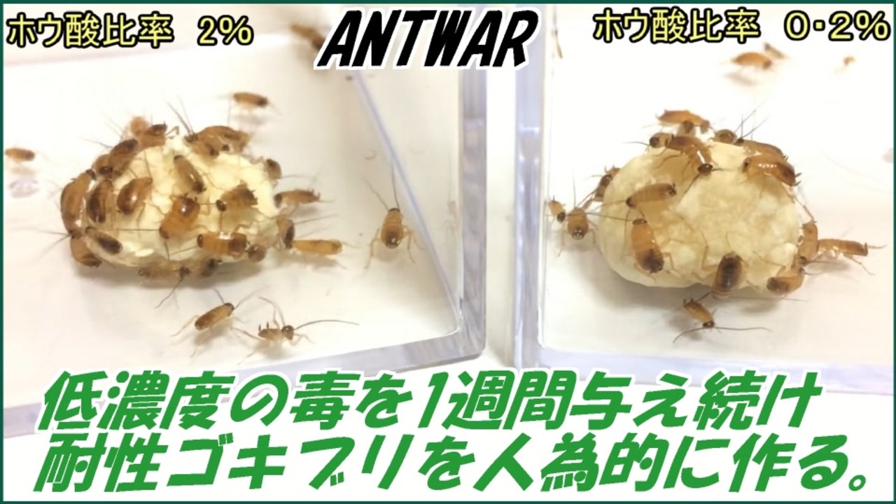 <a href="https://www.nicovideo.jp/watch/sm35633148" class="watch">sm35633148</a><span style="color: #000000; font-size: 14px;">←もどる 次へ→</span><a href="https://www.nicovideo.jp/watch/sm35650083" class="watch">sm35650083</a><br><span style="color: #000000;">火曜・木曜・土曜・日曜の週4回更新。<br><br>蟻戦争マイリスト→</span><span style="color: #006699; font-size: 14px;"><u><a href="https://www.nicovideo.jp/mylist/56298874" target="_blank" rel="noopener">mylist/56298874</a></u></span><br><br><span style="color: #000000; font-size: 14px;">∧__∧<br>(・ω・)<誰かこの結果を私の代わりに論文にまとめてください。<br><br>蟻は高度な社会性を持つ昆虫である。<br>~The ANT is advanced social insect.~<br><br>卵を産む役、飼育する役、兵隊役などに分かれ、1つのコミュニティを形成する。<br>~ANTs constitute one comunity.ANTs have the part(childbirth,bring<br>up,military service) in the community.~<br><br>本来出会わないはずの2つの種族が遭遇した時、我々は彼らの未知なる知性を発見するかもしれない。~ We may discover their intelligences when two species encounter.~</span>