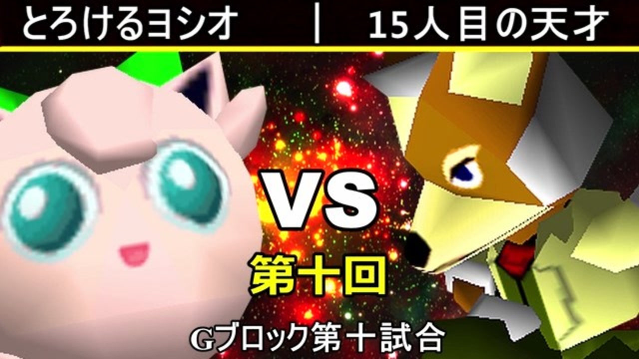 事情により先にGブロックからの投稿となりますm(_ _)m<br>※どちらが勝つかアンケ結果(Twitter調べ) <br>とろけるヨシオ(PU) 20% VS 15人目の天才(FO) 80%<br><br><span style="color: #ff0000; font-size: 13px;"><u>※プロスマブラーになりました→</u></span><span style="font-size: 13px;"> </span><a href="https://bit.ly/2YJCWYA" target="_blank" rel="noopener nofollow">https://bit.ly/2YJCWYA</a><br><span style="color: #0000ff; font-size: 13px;"><u>※64スマブラCPUトナメ実況wiki</u></span><span style="color: #0000ff; font-size: 13px;">→</span> <a href="https://wiki3.jp/cpu_64" target="_blank" rel="noopener nofollow">https://wiki3.jp/cpu_64</a><br><br><span style="color: #ff0000; font-size: 24px;"><strong>次→</strong></span>【<a href="https://www.nicovideo.jp/watch/sm35658819" class="watch">sm35658819</a>】※毎日投稿<br><br>前【<a href="https://www.nicovideo.jp/watch/sm35643266" class="watch">sm35643266</a>】 <span style="color: #000000; font-size: 13px;">Gブロック第一試合【</span><a href="https://www.nicovideo.jp/watch/sm35566592" class="watch">sm35566592</a><span style="color: #000000; font-size: 13px;">】</span><span style="font-size: 13px;"> </span>Aブロック第一試合【<a href="https://www.nicovideo.jp/watch/sm35254266" class="watch">sm35254266</a>】 <br><span style="font-size: 14px;">第十回選手紹介動画【</span><span style="color: #006699; font-size: 14px;"><a href="https://www.nicovideo.jp/watch/sm35240933" class="watch">sm35240933</a></span><span style="font-size: 14px;">】</span><br>第十回マイリスト【<a href="https://www.nicovideo.jp/mylist/65788927" target="_blank" rel="noopener">mylist/65788927</a>】<br>64スマブラCPUトナメ実況part1まとめ【<a href="https://www.nicovideo.jp/mylist/60846861" target="_blank" rel="noopener">mylist/60846861</a>】<br>その他シリーズ【<a href="https://www.nicovideo.jp/mylist/12965027" target="_blank" rel="noopener">mylist/12965027</a>】<br><br><span style="color: #00bfff; font-size: 13px;"><strong>Twitter</strong></span>【<a href="https://twitter.com/niconicopppppp" target="_blank" rel="noopener nofollow">https://twitter.com/niconicopppppp</a> 】<br><span style="color: #ff4500; font-size: 13px;"><strong>チャンネル</strong></span>【<a href="https://ch.nicovideo.jp/p-desu" target="_blank" rel="noopener">ch.nicovideo.jp/p-desu</a>】
