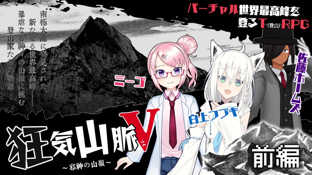 <span style="color: #000000; font-size: 14px;">『狂気山脈V ~邪神の山嶺~』</span><br><br><strong>バーチャルYouTuberが、バーチャル登山家を演じて、バーチャル世界最高峰を登るTRPG</strong>を遊びました。<br>参加者は<span style="font-size: 16px;"><strong>白上フブキ</strong></span>さん、<span style="font-size: 16px;"><strong>佐藤ホームズ</strong></span>さん、<span style="font-size: 16px;"><strong>ミーゴ</strong></span>さんの豪華3名。<br><br><br><span style="color: #000000; font-size: 13px;">|<a href="https://www.nicovideo.jp/mylist/66469206" target="_blank" rel="noopener">mylist/66469206</a>|</span>次→<span style="color: #000000; font-size: 13px;"><a href="https://www.nicovideo.jp/watch/sm35669593" class="watch">sm35669593</a></span><br><br><br><span style="font-size: 10px;">※YouTubeLiveでの生配信の、ほぼノー編集の切り出し動画です。<br> 先が待てない場合はアーカイブをどうぞ <a href="https://www.youtube.com/playlist?list=PLmoGiAJAqkMeyVMI_DIxjv8QuL9ASxT04" target="_blank" rel="noopener nofollow">https://www.youtube.com/playlist?list=PLmoGiAJAqkMeyVMI_DIxjv8QuL9ASxT04</a></span><br />twitter:<a href="https://twitter.com/m_Usi" target="_blank" rel="noopener nofollow">https://twitter.com/m_Usi</a><br>Youtubeチャンネル:<a href="https://www.youtube.com/c/madaraUsi" target="_blank" rel="noopener nofollow">https://www.youtube.com/c/madaraUsi</a><br>pixivFANBOX:<a href="https://www.pixiv.net/fanbox/creator/487591" target="_blank" rel="noopener nofollow">https://www.pixiv.net/fanbox/creator/487591</a>
