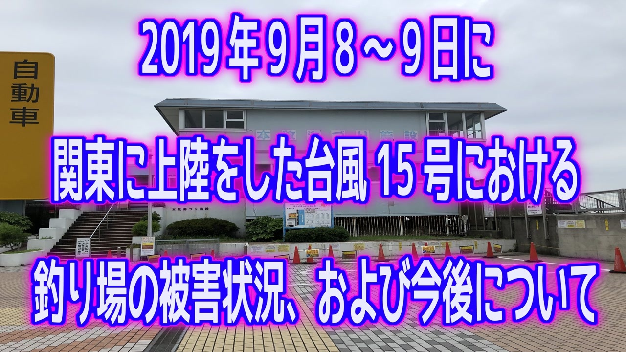 みなさん、こんにちは。<br>下手の釣り好き深神高広(みかんたかひろ)です。<br><br>2019年9月8~9日に欠けて、関東に上陸をした<br>台風15号によって、関東の釣り場は甚大な被害を受けました。<br><br>私が良く行く釣り場も当然被害を受け、一部に関しては<br>釣り場閉鎖、立入禁止と言った致命的な被害を被りました。<br><br>今回の動画は、閉鎖になってしまった釣り場に関して<br>管轄部署の担当者と直接電話で話し、状況を聞いてみました。<br><br>内容としては下記の通りです(2019年9月10日現在)<br>①本牧海づり施設→復旧見通し立たず(施設閉鎖中)<br>②大黒海づり施設→早ければ1ヶ月ぐらいで復旧(施設閉鎖中)<br>③浮島つり園→復旧見通し立たず(しばらく立入禁止)<br>④福浦岸壁→復旧見通し立たず、最低でも1年以上(立入禁止)<br>⑤うみかぜ公園→冬までには復旧?(釣り禁止)<br>⑥横須賀海辺つり公園→見通し立たず、年内復旧?(施設休園中)<br>⑦アイクル→見通し立たず(施設閉鎖中)<br>⑧若洲海浜公園→未確認(海づり施設は閉鎖中)<br>⑨オリジナルメーカー→順次復旧、早ければ9月に一部開放(閉鎖中)<br><br>当然、状況は一刻一刻と変わって行くと思います。<br>最新の情報は、各種HPにお知らせがあると思いますので、<br>気になる方は、釣りに行かれる前にHPで確認を。<br><br>さて、一部の場所は明確に「立入禁止」「釣り禁止」と<br>なっているにもかかわらず、釣り人が釣りをしている現状です。<br>復旧作業に携わる方々は、私達釣り人のために復旧を<br>してくださっているわけですから、私達釣り人が作業の<br>邪魔をすることはあってはいけないことです。<br>同じ釣り人として恥ずかしい限りです。<br>もう少し、マナーとモラルと持って釣りを楽しめないものか・・・?<br><br>一日も早く、釣りのできる環境に戻ってほしい。<br>復旧作業をされる方々に感謝を持って、復旧をお祈りします。