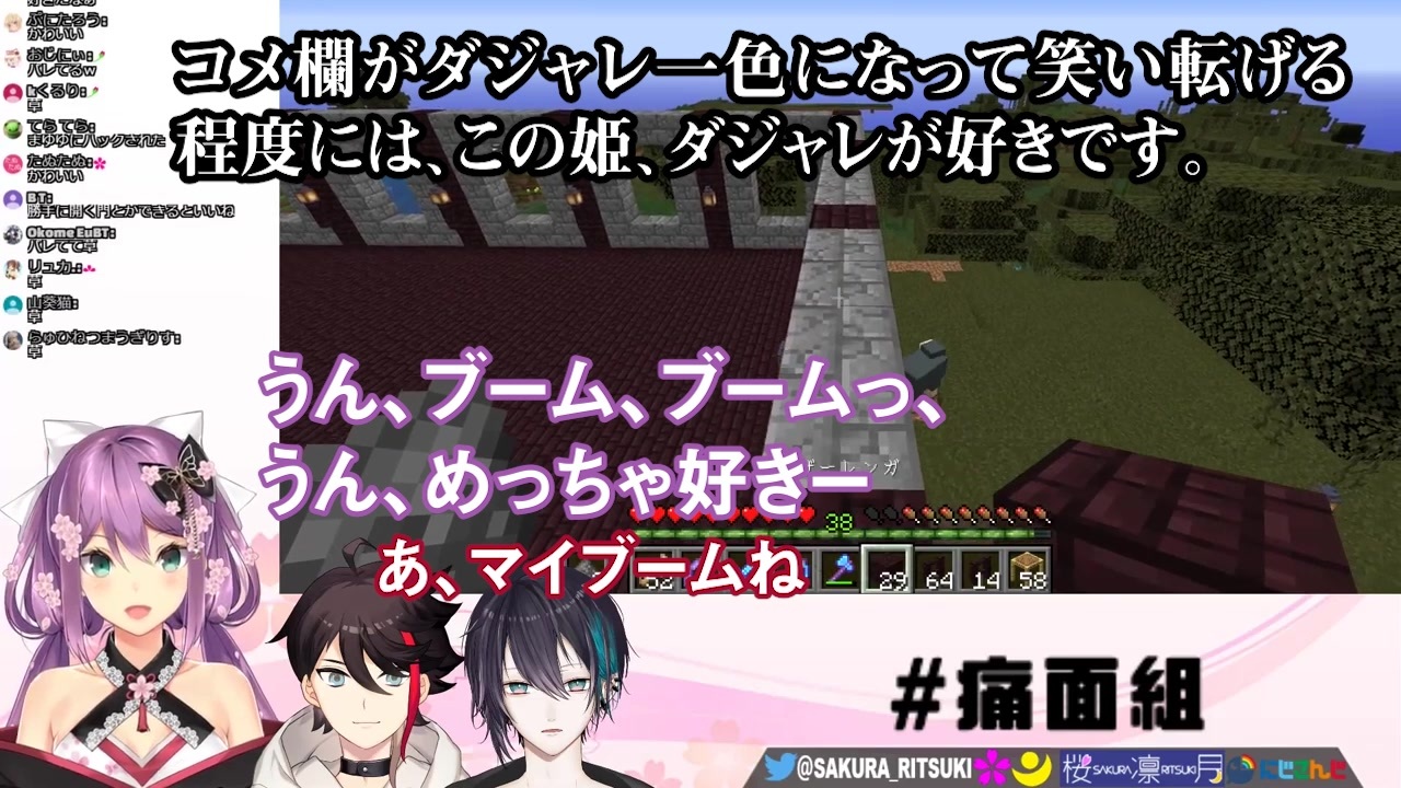 りつきんがダジャレ好きだと知って、ダジャレで挨拶してくれるまゆゆんは、やっぱりママなんだなって。<br>次回D1、期待しています!<br><br>マイリスト<br><a href="https://www.nicovideo.jp/mylist/66425655" target="_blank" rel="noopener">mylist/66425655</a><br><br>3人のチャンネル登録、よろしくな!<br>桜凛月<br><a href="https://www.youtube.com/channel/UCfQVs_KuXeNAlGa3fb8rlnQ" target="_blank" rel="noopener nofollow">https://www.youtube.com/channel/UCfQVs_KuXeNAlGa3fb8rlnQ</a><br>黛 灰<br><a href="https://www.youtube.com/channel/UCb5JxV6vKlYVknoJB8TnyYg" target="_blank" rel="noopener nofollow">https://www.youtube.com/channel/UCb5JxV6vKlYVknoJB8TnyYg</a><br>三枝明那<br><a href="https://www.youtube.com/channel/UCNW1Ex0r6HsWRD4LCtPwvoQ" target="_blank" rel="noopener nofollow">https://www.youtube.com/channel/UCNW1Ex0r6HsWRD4LCtPwvoQ</a><br><br>使用動画<br>にじさんじD-1グランプリ【にじさんじ】<br><a href="https://www.youtube.com/watch?v=H3kFF4YB148" target="_blank" rel="noopener nofollow">https://www.youtube.com/watch?v=H3kFF4YB148</a><br><br>痛面組 始動!!【にじさんじ】【Minecraft】<br><a href="https://www.youtube.com/watch?v=Vyt1tBo4HBE" target="_blank" rel="noopener nofollow">https://www.youtube.com/watch?v=Vyt1tBo4HBE</a><br><br>感想とか 建築とか しながら まったりしよーーー【にじさんじ】【Minecraft】<br><a href="https://www.youtube.com/watch?v=hmA4nJEEAZI" target="_blank" rel="noopener nofollow">https://www.youtube.com/watch?v=hmA4nJEEAZI</a><br><br>youtube<br><a href="https://www.youtube.com/watch?v=mTzYnT-BZK4" target="_blank" rel="noopener nofollow">https://www.youtube.com/watch?v=mTzYnT-BZK4</a>