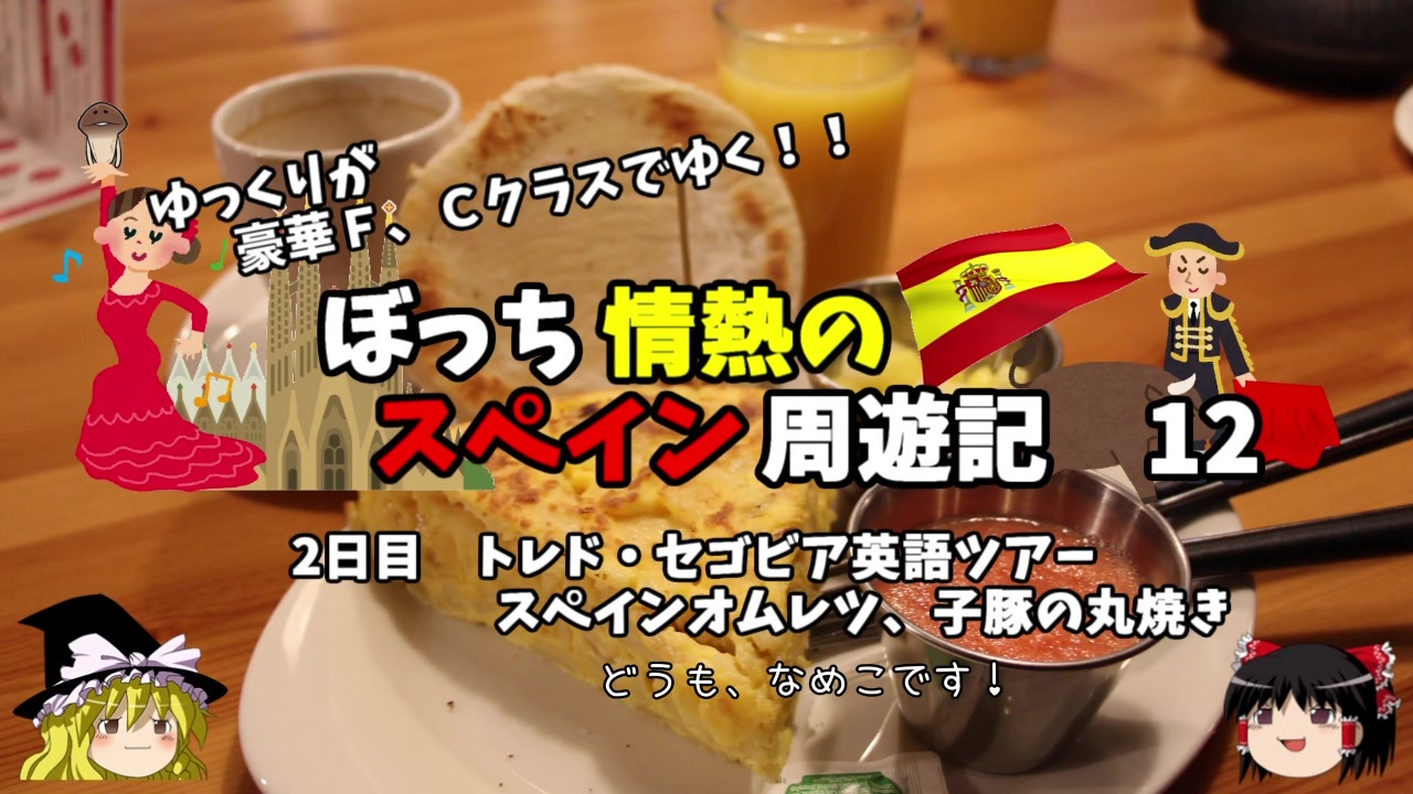 <span style="color: #ff0000; font-size: medium;"><u>※Youtubeで1話分、先行配信中 </u></span><br><span style="color: #0000ff; font-size: medium;"> <a href="http://www.youtube.com/c/なめこのぼっち旅" target="_blank" rel="noopener nofollow">http://www.youtube.com/c/なめこのぼっち旅</a></span> <br><br>今回はグルメ回!<br>スペインオムレツ、トルティージャ、<br>セゴビア名物 子豚の丸焼きを頂きますよ!<br><br><span style="color: #ff0000;">コミュニティー→co2910020</span><br><br> twitter→<a href="https://twitter.com/ryontan" target="_blank" rel="noopener nofollow">https://twitter.com/ryontan</a><br><br><a href="https://www.nicovideo.jp/watch/sm35648348" class="watch">sm35648348</a>←前回 <span style="color: #ff0000;">次回 第13話→</span><a href="https://www.nicovideo.jp/watch/sm35703924" class="watch">sm35703924</a><br><br>解説・雑談系→<a href="https://www.nicovideo.jp/mylist/63171869" target="_blank" rel="noopener">mylist/63171869</a><br>今作 スペイン周遊記→<a href="https://www.nicovideo.jp/mylist/64537827" target="_blank" rel="noopener">mylist/64537827</a><br>前作 韓国トルコ旅行記→<a href="https://www.nicovideo.jp/mylist/63654428" target="_blank" rel="noopener">mylist/63654428</a><br>車中泊旅行記→<a href="https://www.nicovideo.jp/mylist/54706524" target="_blank" rel="noopener">mylist/54706524</a><br>久米島(沖縄)旅行記→<a href="https://www.nicovideo.jp/mylist/63059251" target="_blank" rel="noopener">mylist/63059251</a><br>イギリスタイ旅行記→<a href="https://www.nicovideo.jp/mylist/60044833" target="_blank" rel="noopener">mylist/60044833</a><br>クルーズ旅行記→<a href="https://www.nicovideo.jp/mylist/57397685" target="_blank" rel="noopener">mylist/57397685</a><br>ドイツ周遊記→<a href="https://www.nicovideo.jp/mylist/54938346" target="_blank" rel="noopener">mylist/54938346</a><br>北海道旅行記→<a href="https://www.nicovideo.jp/mylist/52618057" target="_blank" rel="noopener">mylist/52618057</a><br>アメリカ横断記→<a href="https://www.nicovideo.jp/mylist/48621785" target="_blank" rel="noopener">mylist/48621785</a><br>イタリア周遊記→<a href="https://www.nicovideo.jp/mylist/45763559" target="_blank" rel="noopener">mylist/45763559</a><br>NY旅行記→<a href="https://www.nicovideo.jp/mylist/44343854" target="_blank" rel="noopener">mylist/44343854</a>