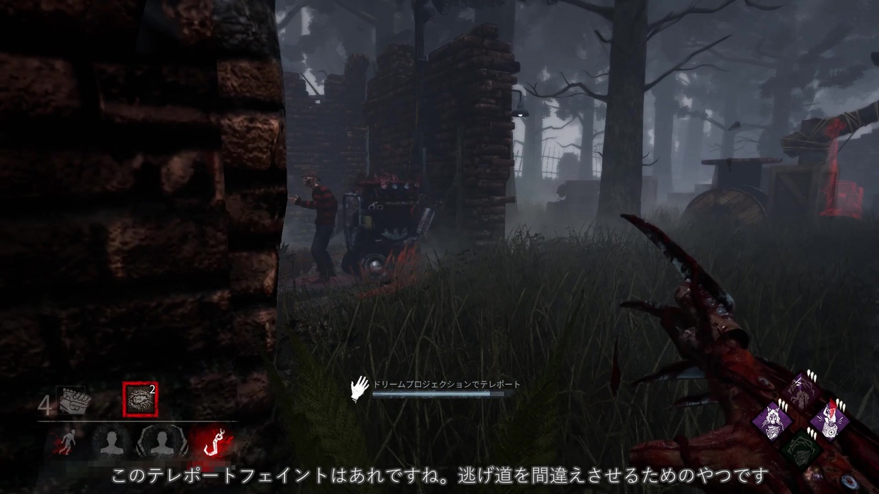 発電機ちゃんはわたしが絶対に守ってあげます(全力で蹴り飛ばしつつ)<br><br><a href="https://www.nicovideo.jp/watch/sm35636183" class="watch">sm35636183</a>←前回 リスト <a href="https://www.nicovideo.jp/mylist/62705262" target="_blank" rel="noopener">mylist/62705262</a> 次回→<a href="https://www.nicovideo.jp/watch/sm35705798" class="watch">sm35705798</a><br><br>最近目標を見失い気味です<br>動画投稿ですら1年振りなんじゃないのかと勘違いするぐらいには久々な感じ?<br><br>以下パーク説明という名のコピペ<br><br>・監視<br>進行度が後退している状態のすべての発電機のオーラを白く表示し、それが生存者に食い止められると8秒・12秒・16秒黄色く表示する。発電機の修理音の聞こえる範囲が8m広くなる。<br>(進行度がゼロになった場合は白から通常の赤へ戻る。黄色の時間が終わった場合も赤に戻る。音による通知は無い。)<br><br>・戦慄<br>生存者を担いだ後、生存者によって修理中でない発電機すべてがエンティティによりブロックされ、次の16秒間修理不能になる。<br>ブロックされている発電機は白いオーラでハイライトされる。<br>このパークは100・80・60秒ごとに発動可能。<br><br>・堕落の介入<br>儀式開始時に、殺人鬼から一番離れた位置にある3発電機がエンティティによって80・100・120秒間ブロックされる<br>その間、生存者はブロックされた発電機の修理ができない<br><br>・イタチが飛び出した<br>生存者をフックに吊るすと効果発動。<br>発電機を破壊行動した際、即座に修理進行率を25%後退させる。<br>毎回吊るした後から1台目の発電機の破壊行動のみ有効。<br>このパーク効果は40・50・60秒の時間制限がある。<br>