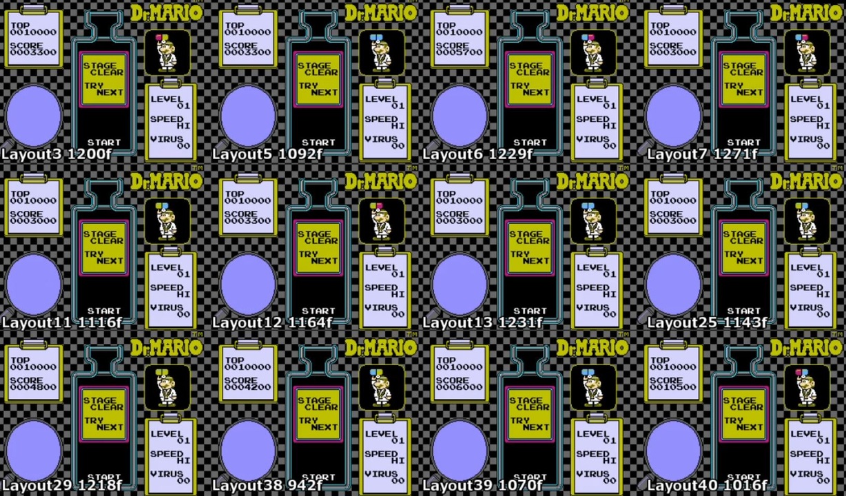 Layout40はいなりはちまん氏にて発見されました。<br>多分これが一番早いと思います。<br><br>ドクターマリオマイリスト:<a href="https://www.nicovideo.jp/mylist/62612542" target="_blank" rel="noopener">mylist/62612542</a><br>ドクターマリオブロマガ:<a href="https://ch.nicovideo.jp/article/ar1670831" target="_blank" rel="noopener">ar1670831</a><br><br>youtube<br><a href="https://youtu.be/yE5fdyGmxLI" target="_blank" rel="noopener nofollow">https://youtu.be/yE5fdyGmxLI</a><br><br>自作TASやゲームリスト:<a href="https://www.nicovideo.jp/mylist/34250554" target="_blank" rel="noopener">mylist/34250554</a><br>自作TAS part1リスト :<a href="https://www.nicovideo.jp/mylist/56436730" target="_blank" rel="noopener">mylist/56436730</a><br>Twitter : <a href="https://twitter.com/pocokhc_cpp" target="_blank" rel="noopener nofollow">https://twitter.com/pocokhc_cpp</a><br>