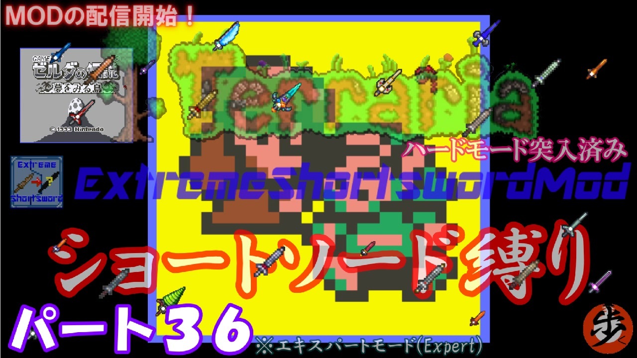 今回はトロフィー狙いのボス戦等をしながら、<br>雑談やコメント返信メインです。<br>しかしその最中に今シリーズ初の出来事が!<br><br><span style="font-size: 18px;"><strong>『Extremeshortsword』MOD公開中!</strong></span><br><strong>tModLoaderからダウンロード可能です!</strong><br><span style="font-size: 13px;"><strong>狂人用のcfモードもあるよ♪</strong></span><br><strong>(※動画内で質問やバグ等の情報は受け付けておりません!)</strong><br><br>ノーバディさんの作ったTerrariaでドット絵を描くときのに役立つ<br>色を選択して同じ色のブロックを教えてくれる便利ツール<br>ダウンロード→<a href="https://github.com/NobodyGonbe/terraria_tile_searcher/releases/tag/1.0" target="_blank" rel="noopener nofollow">https://github.com/NobodyGonbe/terraria_tile_searcher/releases/tag/1.0</a><br>(↓説明やバージョンアップ情報の書いてあるツイッター)<br>Twitter→<a href="https://twitter.com/nobody_gonbe/status/1169849289620611081" target="_blank" rel="noopener nofollow">https://twitter.com/nobody_gonbe/status/1169849289620611081</a><br><br><span style="font-size: 13px;">歩く♪のツイッター→@aruku_douga</span><br><br>ルール(特に決めていませんが一応) <br>1.ショートソード以外の武器は使用しない。(攻撃が当たらない) <br>2.ゲーム内のボスを全て倒す。(イベントや襲撃は余裕があれば) <br>3.バグ技の使用は禁止 (当たり前) <br>4.編集は頑張らない () <br><br><a href="https://www.nicovideo.jp/watch/sm35644714" class="watch">sm35644714</a>←前 次回→<a href="https://www.nicovideo.jp/watch/sm35707052" class="watch">sm35707052</a> 9月21日(土曜日)9時公開<br>ショートソード縛りシリーズ→<a href="https://www.nicovideo.jp/series/12423" target="_blank" rel="noopener">series/12423</a><br>前シリーズ(オワタ式)シリーズ→<a href="https://www.nicovideo.jp/series/12415" target="_blank" rel="noopener">series/12415</a><br>歩くの過去シリーズ→<a href="https://www.nicovideo.jp/mylist/57583133" target="_blank" rel="noopener">mylist/57583133</a><br><br>今回のYouTube→<span style="color: #167ac6; font-size: 11px;"><a href="https://youtu.be/WB51ViR_Z5U" target="_blank" rel="noopener nofollow">https://youtu.be/WB51ViR_Z5U</a></span>