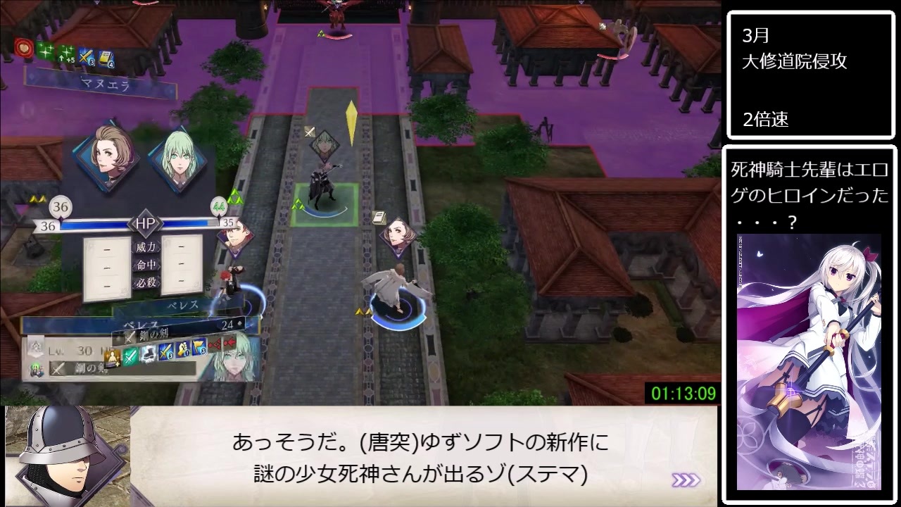世界記録が90分切ってたからチャートの改修作業やってます<br><span style="color: #000000; font-size: 14px;">難易度ノーマル/クラシック<br>引き継ぎ無し<br>計測区間<br>難易度ノーマルを選択~最終章クリアまで<br>記録1時間52分43秒<br>speedrun.comで世界3位(9/6時点)</span><br><span style="color: #006699; font-size: 14px;"><a href="https://www.speedrun.com/fe3h#Black_Eagles" target="_blank" rel="noopener nofollow">https://www.speedrun.com/fe3h#Black_Eagles</a></span><br><span style="color: #000000; font-size: 14px;">part4: </span><a href="https://www.nicovideo.jp/watch/sm35673652" class="watch">sm35673652</a><span style="color: #000000; font-size: 14px;"> </span><br><span style="color: #000000;">part6: </span><a href="https://www.nicovideo.jp/watch/sm35697556" class="watch">sm35697556</a><br><span style="color: #000000;">マイリス: </span><span style="color: #006699; font-size: 14px;"><a href="https://www.nicovideo.jp/mylist/66445695" target="_blank" rel="noopener">mylist/66445695</a></span><br>再走:<a href="https://www.nicovideo.jp/watch/sm35754373" class="watch">sm35754373</a><br>進捗と記録を上げるためのツイッター<br>→@sato_nebosuke