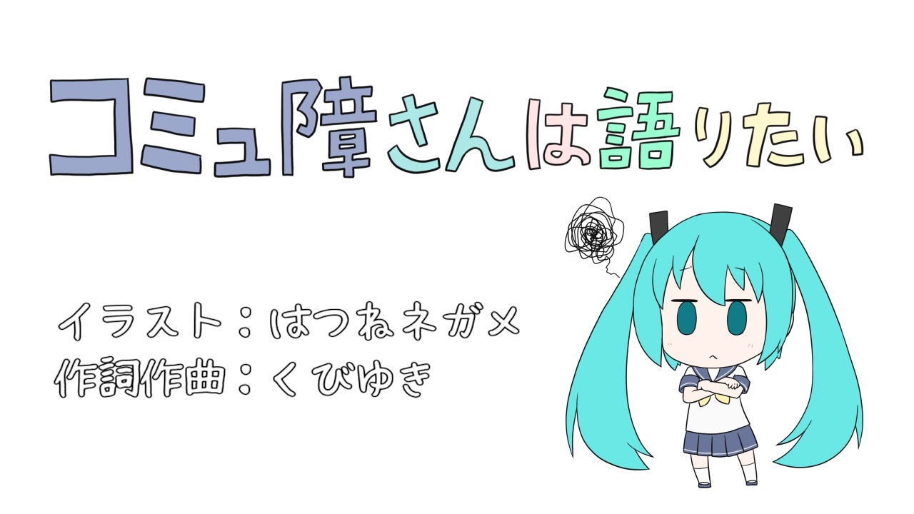言いたい! 言いたい<span style="color: #000000; font-size: 13px;">! </span>話したい<span style="color: #000000; font-size: 13px;">! </span>伝えたい<span style="color: #000000; font-size: 13px;">!</span><br>コミュ障さんは語りたい<br><br>最高にかわいいデフォルメ初音ミクを見ていってください<br><br><span style="color: #000000; font-size: 13px;">作詞曲:くびゆき<br>Twitter:</span><span style="color: #006699; font-size: 13px;"><a href="https://twitter.com/kubiyuki" target="_blank" rel="noopener nofollow">https://twitter.com/kubiyuki</a></span><br><span style="color: #000000; font-size: 13px;">マイリスト:</span><span style="color: #006699; font-size: 13px;"><a href="https://www.nicovideo.jp/mylist/65073856" target="_blank" rel="noopener nofollow">https://www.nicovideo.jp/mylist/65073856</a></span><br><br><span style="color: #000000; font-size: 13px;">イラスト:</span><span style="color: #262626;">はつねネガメ</span><br><span style="color: #000000; font-size: 13px;">Twitter:</span><a href="https://twitter.com/hatsune_negame" target="_blank" rel="noopener nofollow">https://twitter.com/hatsune_negame</a><br><span style="color: #000000; font-size: 14px;">pixiv:</span><a href="https://www.pixiv.net/member.php?id=1969060" target="_blank" rel="noopener nofollow">https://www.pixiv.net/member.php?id=1969060</a><br><span style="color: #000000; font-size: 13px;">マイリスト:</span><a href="https://www.nicovideo.jp/mylist/32102065" target="_blank" rel="noopener nofollow">https://www.nicovideo.jp/mylist/32102065</a><br><br><span style="color: #000000; font-size: 13px;">【YT/V/Playlist✅】さん、 紅雛 さん、広告ありがとうございます!</span>