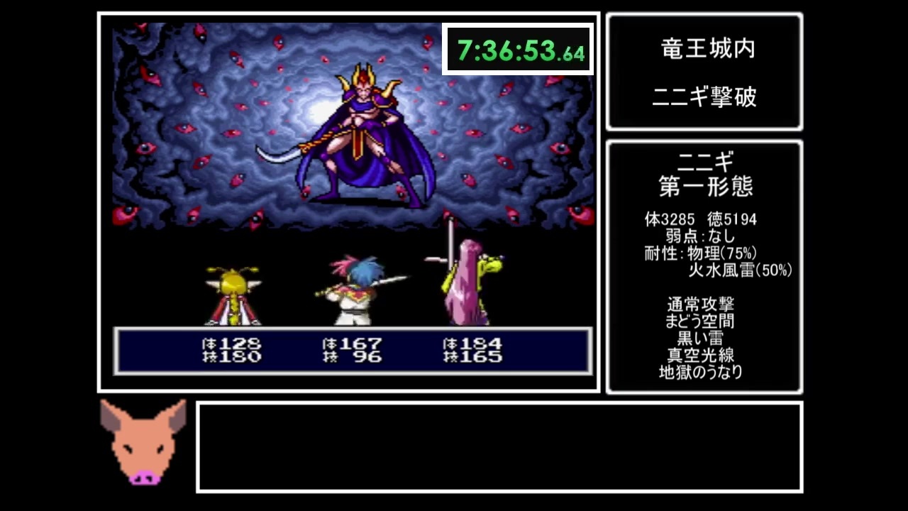 あーもう滅茶苦茶だよ。<br>なんやかんやで次がラストですね。<br>ルンバ<br><br><br>コクビャク戦~ニニギ第一形態撃破<br>前:<a href="https://www.nicovideo.jp/watch/sm35681515" class="watch">sm35681515</a><br>次:<a href="https://www.nicovideo.jp/watch/sm35698071" class="watch">sm35698071</a><br /><br>天外魔境ZEROバグ無しRTA_8時間9分5秒07<br><br>計測区間<br>計測開始:誕生日入力後「はい」を選択した所から<br>計測終了:エンディングで「完」の文字が表示された所まで<br><br>マイリスト:<a href="https://www.nicovideo.jp/my/mylist/#/66285003" target="_blank" rel="noopener nofollow">https://www.nicovideo.jp/my/mylist/#/66285003</a><br>無編集版マイリスト:<a href="https://www.nicovideo.jp/my/mylist/#/66277017+sort=7" target="_blank" rel="noopener nofollow">https://www.nicovideo.jp/my/mylist/#/66277017+sort=7</a><br><br>参考にした攻略サイト様:<a href="http://tengaimakyouzero.g2.xrea.com/tengaizero.html" target="_blank" rel="noopener nofollow">http://tengaimakyouzero.g2.xrea.com/tengaizero.html</a><br><br>チャートの参考元:<br><a href="https://ch.nicovideo.jp/kz2525/blomaga/ar1022316" target="_blank" rel="noopener nofollow">https://ch.nicovideo.jp/kz2525/blomaga/ar1022316</a><br><a href="https://ch.nicovideo.jp/yamihune/blomaga/ar1191290" target="_blank" rel="noopener nofollow">https://ch.nicovideo.jp/yamihune/blomaga/ar1191290</a>