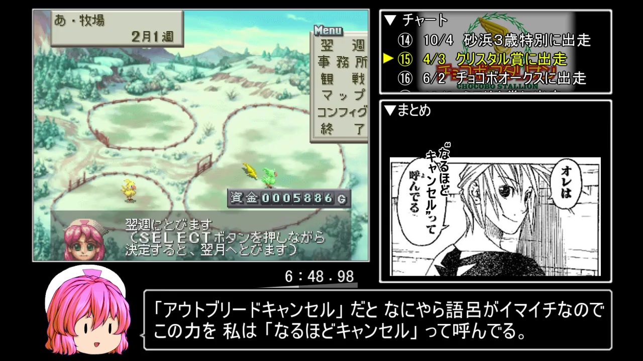 練習がてら初投稿です。<br>無編集はこちら→ <a href="https://www.nicovideo.jp/watch/sm35703032" class="watch">sm35703032</a><br><br>【ルール】<br>1.ゲーム起動から計測開始、チョコボ像を建てたところで計測終了。<br>2.ポケットステーション禁止。<br>3.メモリ破壊系バグ禁止。<br>4.セーブデータ改竄禁止。<br><br>【注意】<br>※ 解析要素があります。苦手な方はご注意ください。<br>※ 序盤に二ヵ所、音量の大きい場所があります。ご注意ください。<br>※ 誤った情報を提供しないよう細心の注意を払ってはいますが、動画内の解説が絶対に正しいとは言い切れません。あくまで参考程度に受け取ってください。<br>※ 淫夢要素はありません。<br><br>【構成】<br>エミュ:bizhawk 2.3.2(x64)<br>BIOS:SCPH-1002<br>コントローラ:Logicool F310 Gamepad<br>ご連絡ありましたら → <a href="https://twitter.com/amatsuki_mirai" target="_blank" rel="noopener nofollow">https://twitter.com/amatsuki_mirai</a><br><br>9/21追記<br>我流人 さん、ミルクレープ さん、lunatic さん、kmg さん、White_Cat さん、からりお さん、温州蜜柑 さん、GK56 さん、不知火 さん、てる虫抹茶 さん、basicerII さん、河上 義雄 さん、はとや さん、<span style="color: #000000; font-size: 13px;">白刹(ハク) さん、</span>bit さん、れうすき さん、珂允 さん、きーろ さん、みゅー さん、<span style="color: #000000; font-size: 13px;">明田蒼憲 さん、</span>みゅー さん、michael さん、<span style="color: #000000; font-size: 13px;">88 さん、</span><span style="color: #252525; font-size: 14px;">Light </span><span style="color: #252525;">さん、</span>brynhildr さん、ビッケバッケ さん、<span style="color: #252525; font-size: 13px;"></span><span style="color: #000000; font-size: 13px;">sousi さん、</span>インラン(,,゚Д゚) さん、みゅー さん、<span style="color: #000000; font-size: 13px;">AYAseL-en さん、</span>広告ありがとうございました。<br>余白がないのでここまでとします。沢山のご支援ありがとうございました。