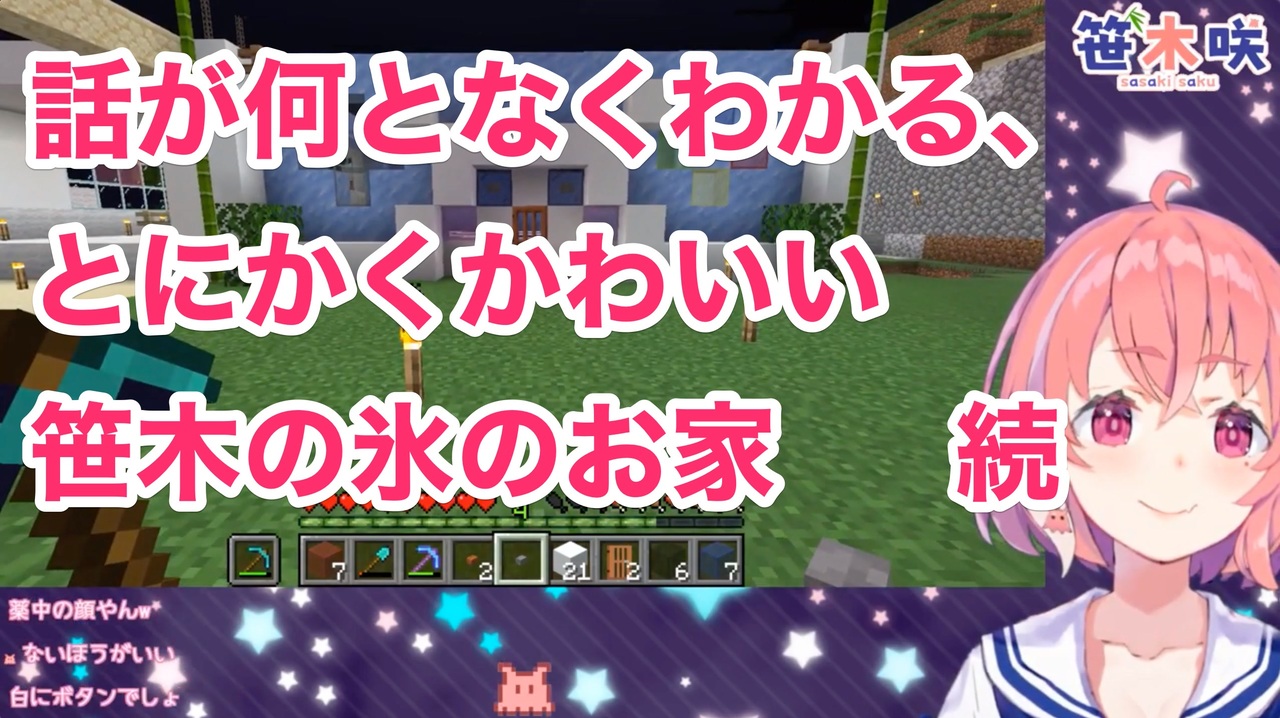 次: <a href="https://www.nicovideo.jp/watch/sm35724268" class="watch">sm35724268</a><br>前: <a href="https://www.nicovideo.jp/watch/sm35709630" class="watch">sm35709630</a><br>投稿一覧:<a href="https://www.nicovideo.jp/user/90970636/video" target="_blank" rel="noopener nofollow">https://www.nicovideo.jp/user/90970636/video</a><br><br>高画質版: <a href="https://youtu.be/uzvfdnhsPBI" target="_blank" rel="noopener nofollow">https://youtu.be/uzvfdnhsPBI</a><br><br>元動画: 【minecraft】おされな氷のお家をつくるやよ~!【笹木咲/にじさんじ】<br><a href="https://www.youtube.com/watch?v=eWsSgRmatoA" target="_blank" rel="noopener nofollow">https://www.youtube.com/watch?v=eWsSgRmatoA</a><br><br>#笹木チャンネル<br><a href="https://www.youtube.com/channel/UCoztvTULBYd3WmStqYeoHcA" target="_blank" rel="noopener nofollow">https://www.youtube.com/channel/UCoztvTULBYd3WmStqYeoHcA</a><br>ーーーーーーーーーーーーーーーーーーーーーーーーー<br>ご視聴ありがとうございました<br>他の動画もよかったら下記からどうぞ<br>YOUTUBE:<br><a href="https://www.youtube.com/channel/UCmxsasPVoJFtS5KEYWJqXiw?view_as=subscriber" target="_blank" rel="noopener nofollow">https://www.youtube.com/channel/UCmxsasPVoJFtS5KEYWJqXiw?view_as=subscriber</a><br>NICONICO:<br><a href="https://www.nicovideo.jp/user/90970636" target="_blank" rel="noopener nofollow">https://www.nicovideo.jp/user/90970636</a><br>ーーーーーーーーーーーーーーーーーーーーーーーーーー